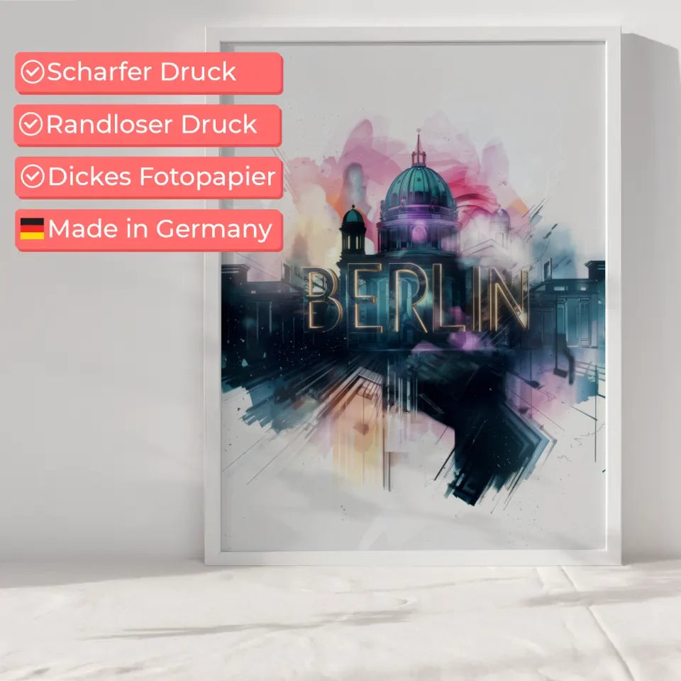 Minimalistisches Aquarell Poster Berlin im modernen Stil