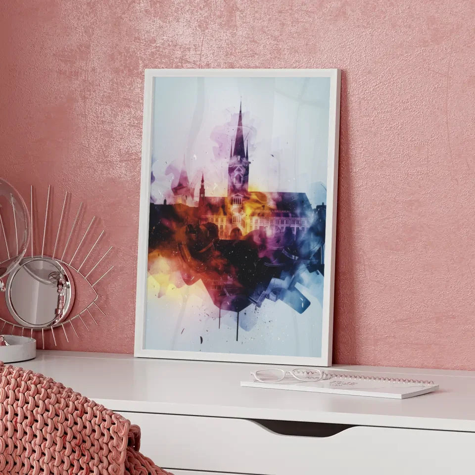 Die lebendige Farbpalette unseres Posters betont die architektonische Eleganz von Mainz und lädt den Betrachter dazu ein, über das Wesen dieser faszinierenden Stadt nachzudenken. Die Kombination aus minimalistischer Ästhetik und ausgefeiltem Konzeptkunstdesign macht dieses Poster zu einem visuell beeindruckenden und inspirierenden Kunstwerk, das die Atmosphäre der Stadt auf einzigartige Weise verkörpert.