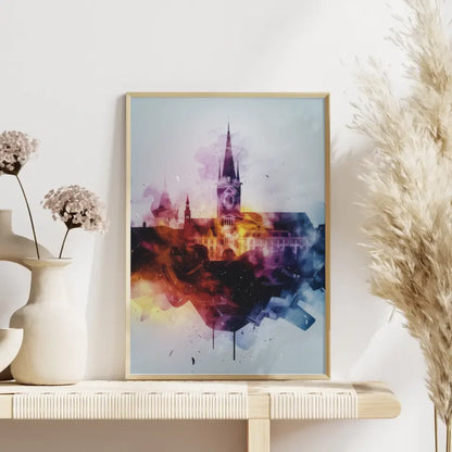 Minimalistisches Aquarell Poster von Mainz in buntem Design