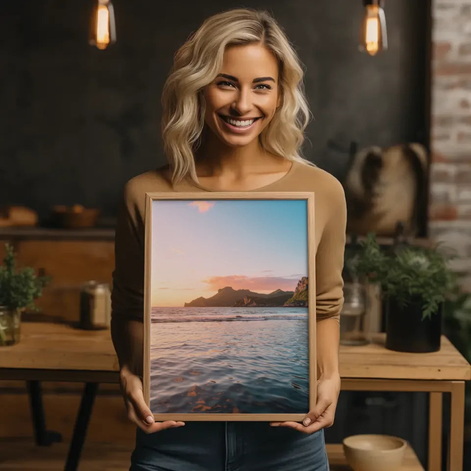 Die Boho-Vase auf unserem Poster ist kunstvoll in erdigen Tönen gestaltet, die an die traditionelle indonesische Töpferei erinnern. Sie steht auf einer Holzoberfläche, die einen warmen Kontrast zum weißen Hintergrund bildet. Diese Kombination macht das Poster nicht nur zum idealen Mittelpunkt für Ihre Wandgestaltung, sondern auch zu einem Gesprächsstück für Ihre Gäste.