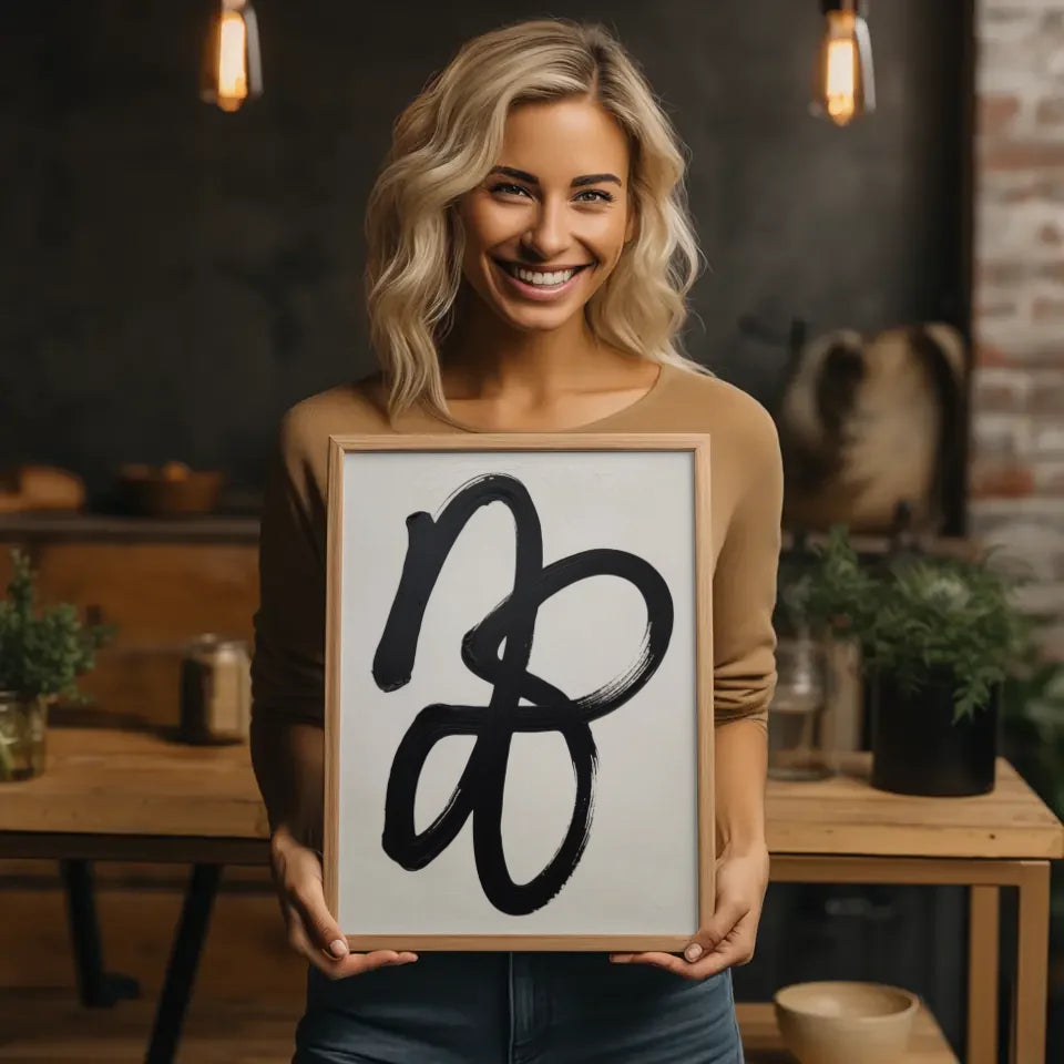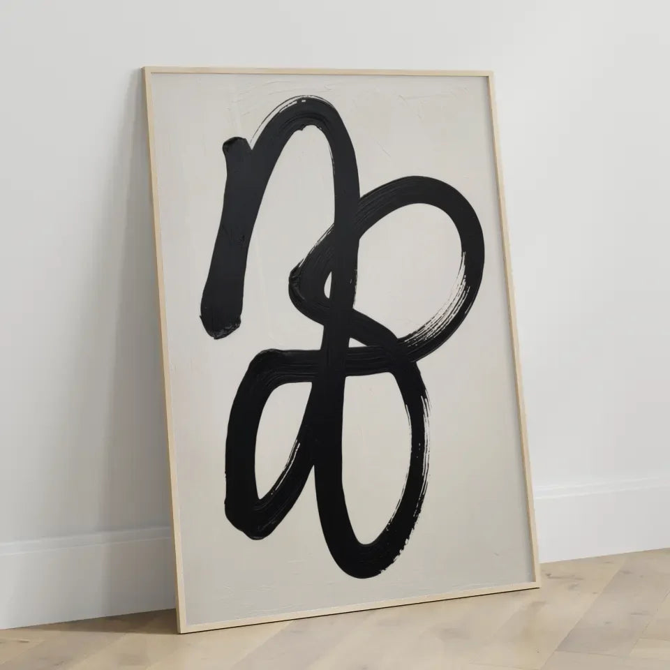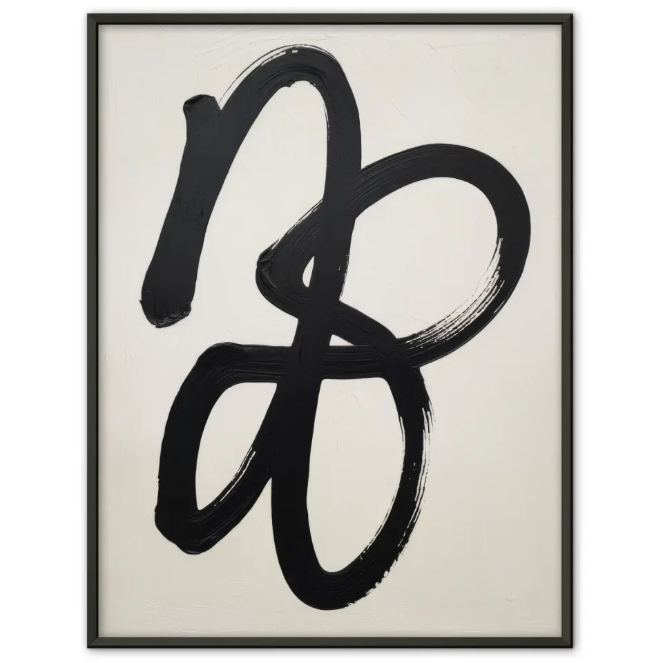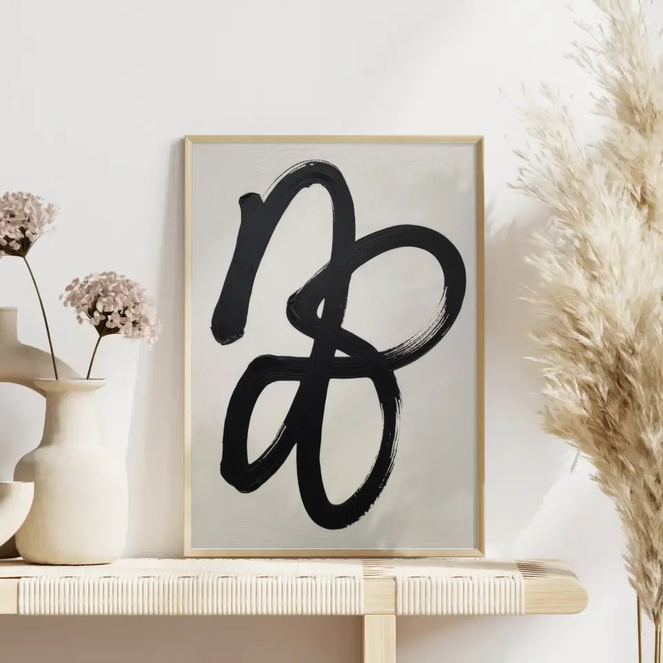 Entdecken Sie unser minimalistisches Poster mit abstrakten Pinselstrichen in Schwarz und Weiß, das jedem Raum einen Hauch von zeitgenössischem Stil verleiht. Dieses Poster ist ideal für alle, die die Schönheit der Einfachheit schätzen und Kunst lieben, die zum Nachdenken anregt. Die ineinander verschlungenen schwarzen Pinselstriche auf einem hellen Hintergrund erzeugen eine harmonische Balance und bringen Dynamik in Ihre Wohn- oder Arbeitsräume. Die fließenden Striche scheinen mit einer dicken, pastosen Textur gemalt zu sein, was dem Kunstwerk Leben und Bewegung verleiht. Jedes Detail in diesem abstrakten Design lässt Raum für individuelle Interpretationen, sodass Betrachter ihre eigene Bedeutung finden können. Machen Sie dieses außergewöhnliche poster zu einem zentralen Element Ihrer Einrichtung und lassen Sie sich von seiner Ausdruckskraft inspirieren. Egal, ob im Wohnzimmer, im Schlafzimmer oder im Büro, dieses zeitlose Poster passt perfekt zu verschiedenen Stilen und schafft eine stilvolle Atmosphäre. Entdecken Sie jetzt die Möglichkeiten, die unser minimalistisches Poster bietet, und bringen Sie frischen Wind in Ihre Räume!