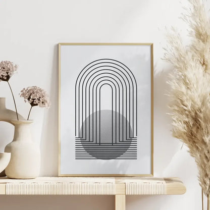 Minimalistisches Poster mit Linien und kreisförmigem Design in grau