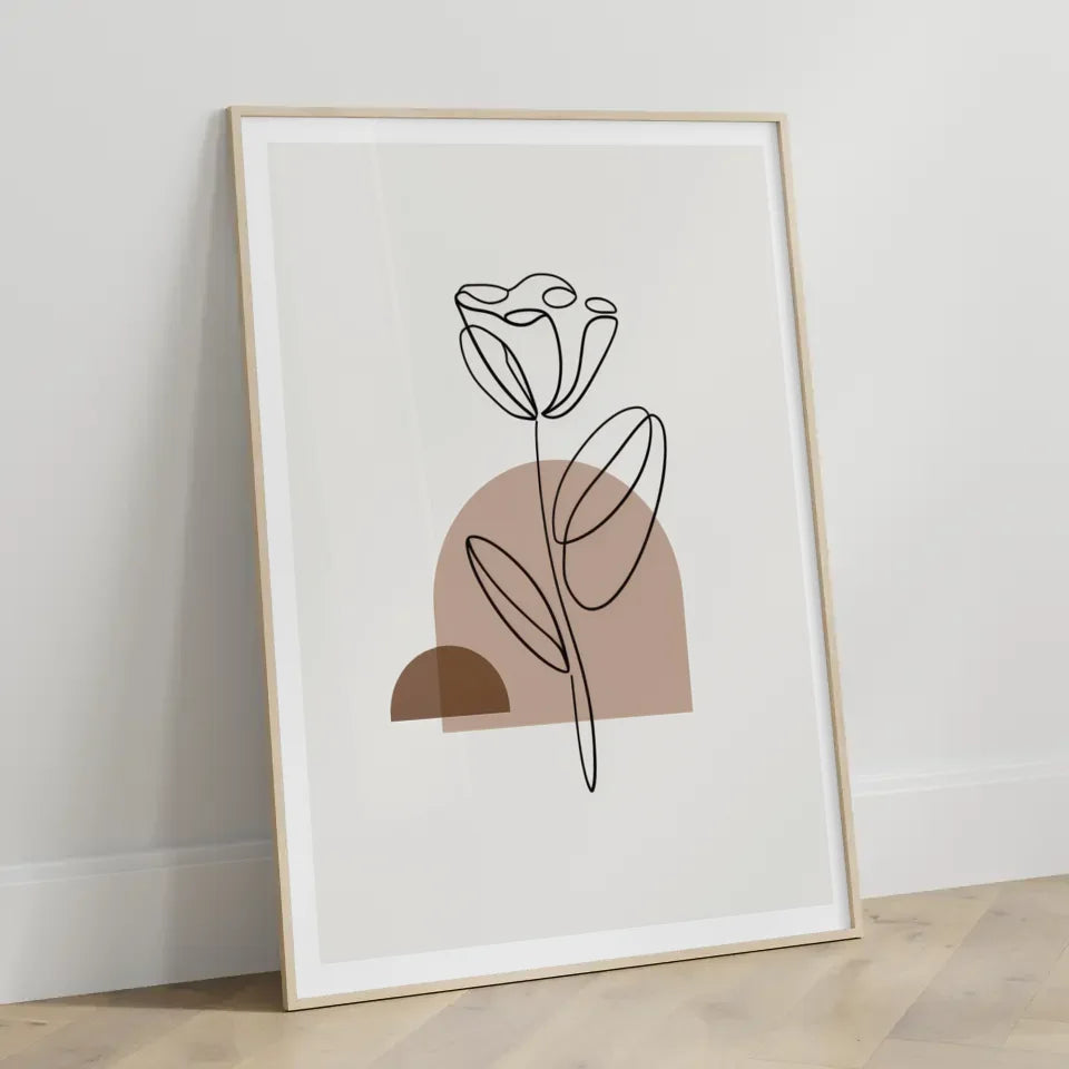 Minimalistisches Poster mit liniengezeichneter Blume im Rahmen