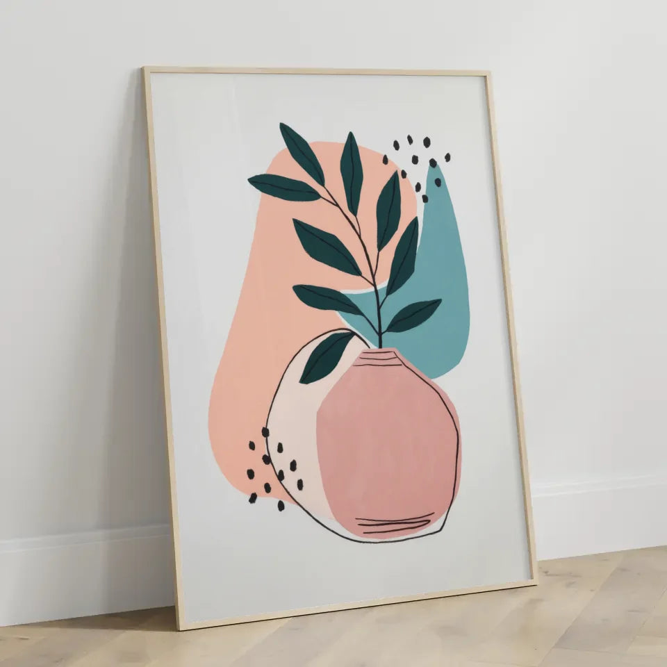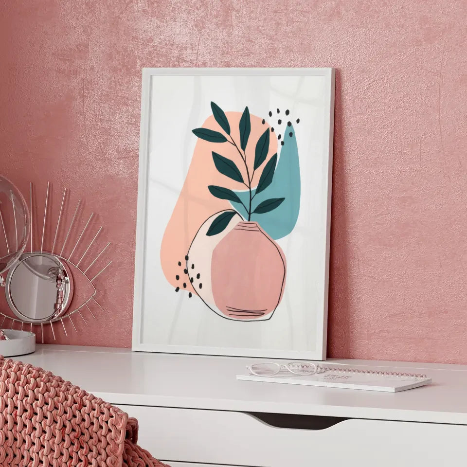 Minimalistisches Poster mit Pflanze in rosa Vase für dein Zuhause