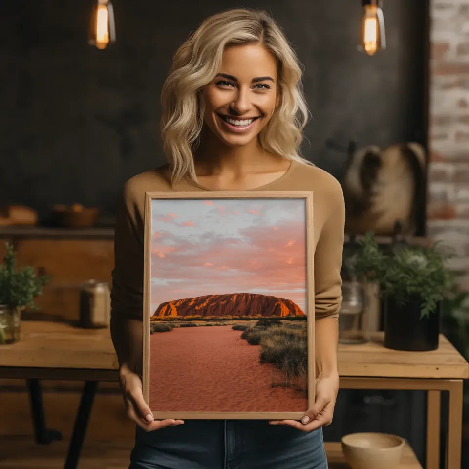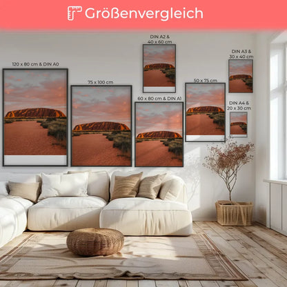 Mit diesem Poster verleihen Sie Ihrem Wohnraum eine besondere Note. Das Ayers Rock Poster zieht die Blicke auf sich und sorgt für eine einladende Atmosphäre. Egal, ob im Wohnzimmer, Büro oder Flur – dieses Kunstwerk ist ein echter Hingucker und lässt Sie von den Weiten Australiens träumen.