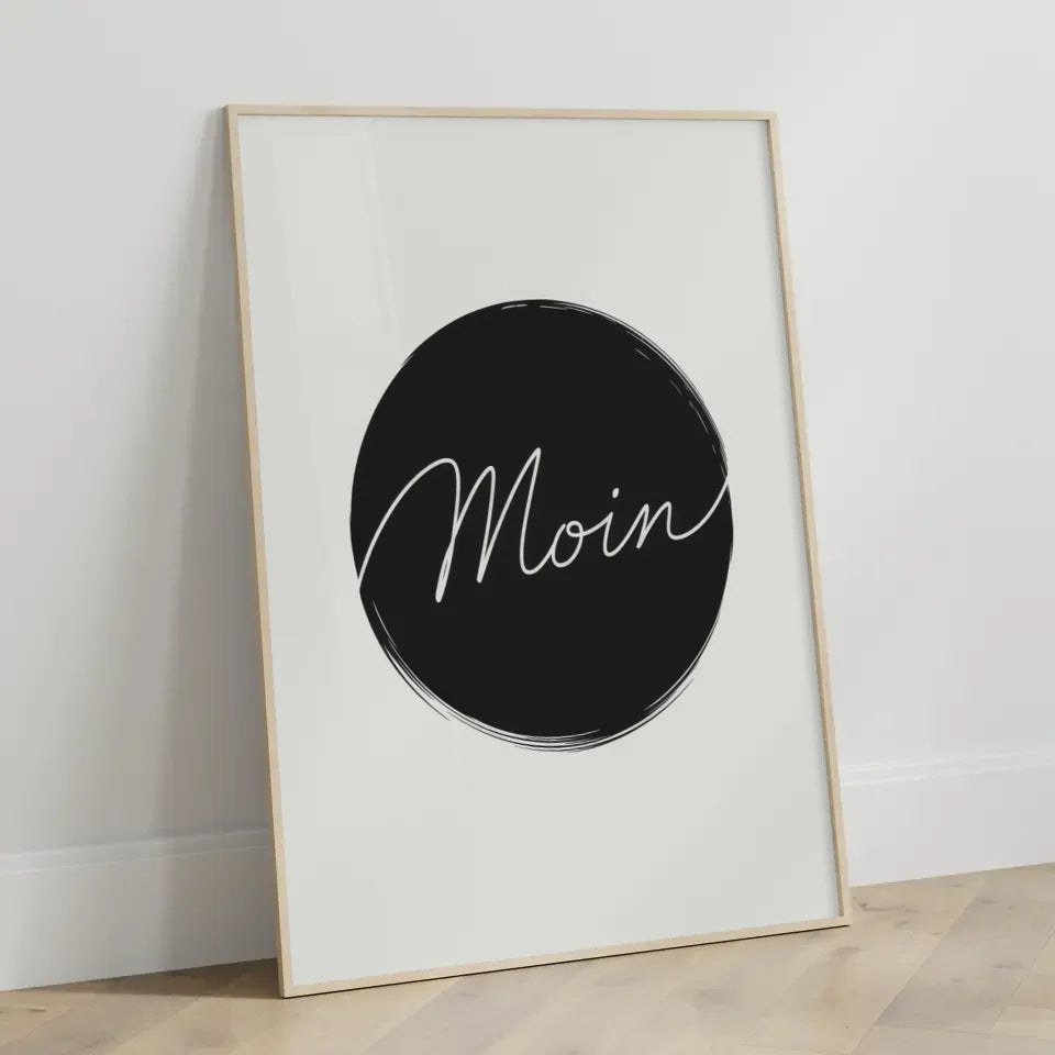 Minimalistisches Poster Moin in Schwarz Weiß für moderne Dekoration