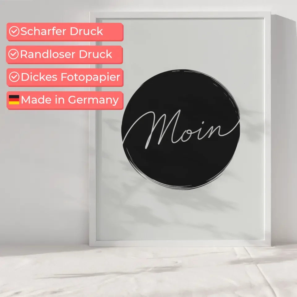 Verleihen Sie Ihren Wänden mit diesem einzigartigen Spruchbild einen modernen Touch und zeigen Sie Ihre Individualität. Das minimalistische Poster Moin ist die ideale Wahl für alle, die schlichte Eleganz und zeitgemäßes Design schätzen. Bestellen Sie noch heute Ihr Poster und setzen Sie Akzente in Ihrer Wohnung!