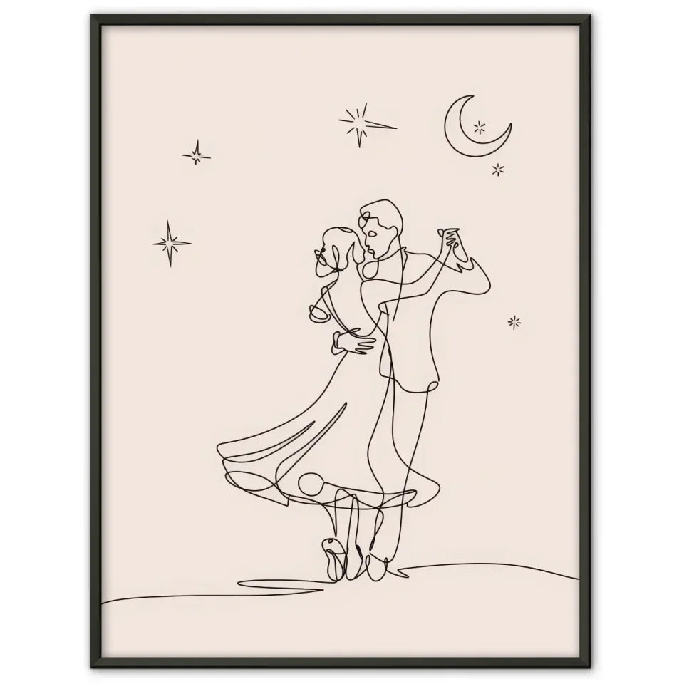 Minimalistisches Poster: Paar unter sternenklarem Nachthimmel tanzen