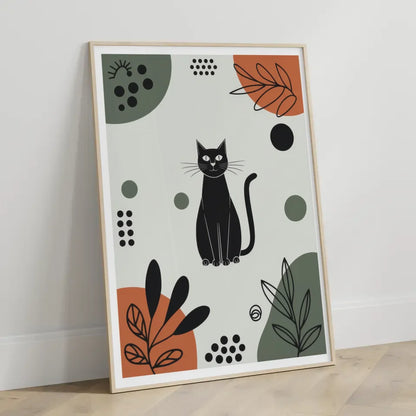 Minimalistisches Poster schwarze Katze in bunten Mustern