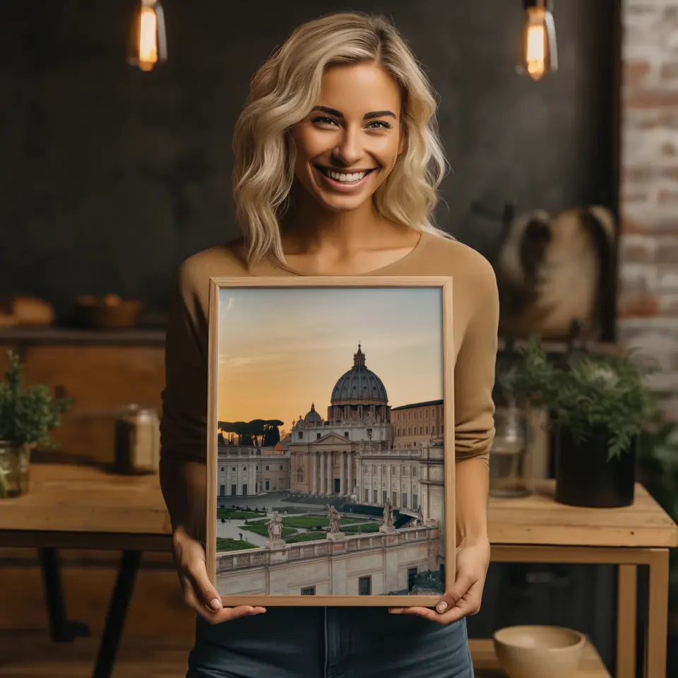 Das Poster eignet sich hervorragend als elégantes Wohnaccessoire oder als besonderes Geschenk für Kunstliebhaber und Reisefans. Verleihen Sie Ihrem Wohnraum mit diesem Poster eine besondere Note und lassen Sie sich von der inspirierenden Atmosphäre des Vatikanmuseums verzaubern. Erleben Sie die Faszination der Vatikanstadt hautnah und dekorieren Sie Ihre Wände mit einem Stück Geschichte und Kultur.