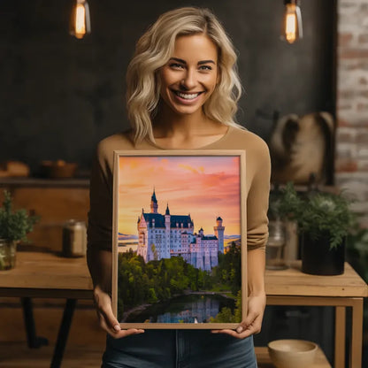 Unser Schloss Neuschwanstein Poster fängt die ehrfurchtgebietende Architektur und die umgebende Natur in traumhaften Farben ein. Die Goldene Stunde verleiht dem Bild eine besondere Lichtstimmung, die in jedem Raum für eine warme Atmosphäre sorgt. Egal, ob Sie Ihre Wohnatmosphäre aufpeppen oder ein einzigartiges Geschenk für einen besonderen Menschen suchen – dieses Poster ist die ideale Wahl.