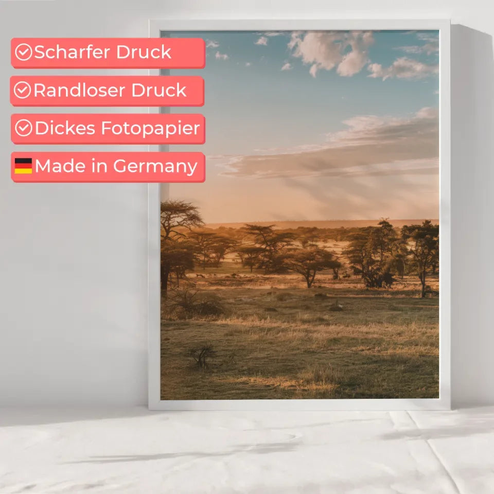 Jedes Poster wird in hochwertiger DruckqualitĂ€t gefertigt, um die lebendigen Farben und Details optimal zur Geltung zu bringen. Bringen Sie ein StĂŒck Afrika in Ihr Zuhause und lassen Sie sich von der Magie der Natur inspirieren.