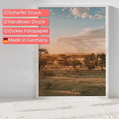 Verpassen Sie nicht die Gelegenheit, dieses wundervolle Poster zu erwerben und Ihr Zuhause mit einem Hauch von Exotik und Abenteuer zu bereichern. Bestellen Sie jetzt und genieĂen Sie die Schönheit des Serengeti-Nationalparks direkt an Ihrer Wand.