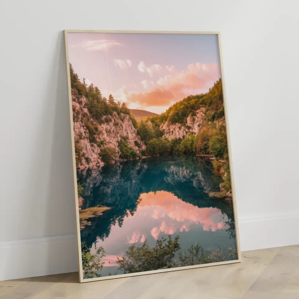 Das Poster zeigt die faszinierenden Farben und das ruhige Wasser der Seen, umgeben von der beeindruckenden Natur Kroatiens. Diese einzigartige Aufnahme wird nicht nur zum Blickfang in deinem Wohnzimmer, sondern bringt auch einen Hauch von Urlaub und Fernweh in jeden Raum.