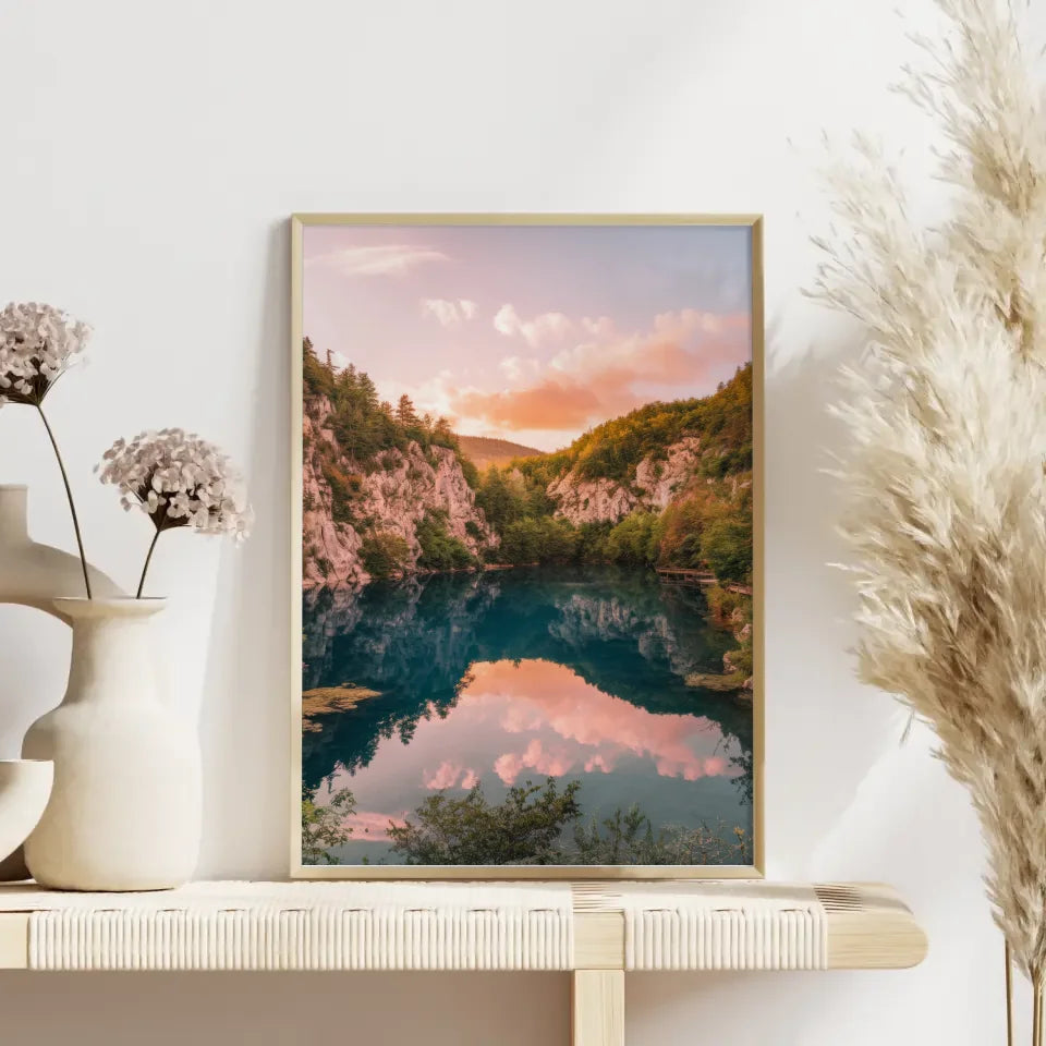 Kaufe jetzt dein Poster Plitvicer Seen Kroatien Golden Hour und erfreue dich an der einmaligen Qualität und Brillanz, die dieses Kunstwerk in dein Zuhause bringt. Gestalte deine Wände mit diesem bezaubernden Motiv und lass die Natur in deinen Alltag einziehen!