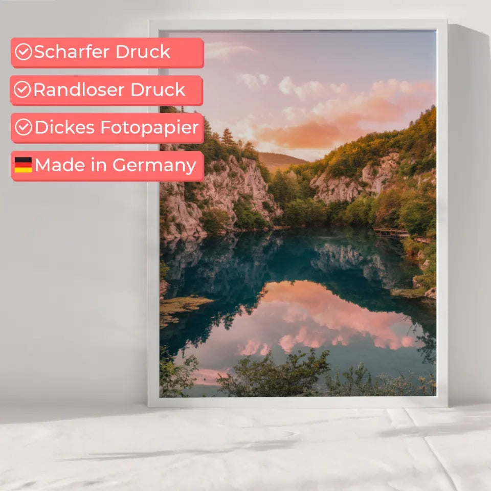 Unser Poster Plitvicer Seen Kroatien Golden Hour ist in verschiedenen Größen erhältlich und eignet sich perfekt für die Wandgestaltung in Wohnräumen, Büros oder als Geschenk für Natur- und Reisebegeisterte. Lass dich von der Schönheit der kroatischen Landschaft inspirieren und wähle das ideale Poster für deine individuelle Einrichtung.