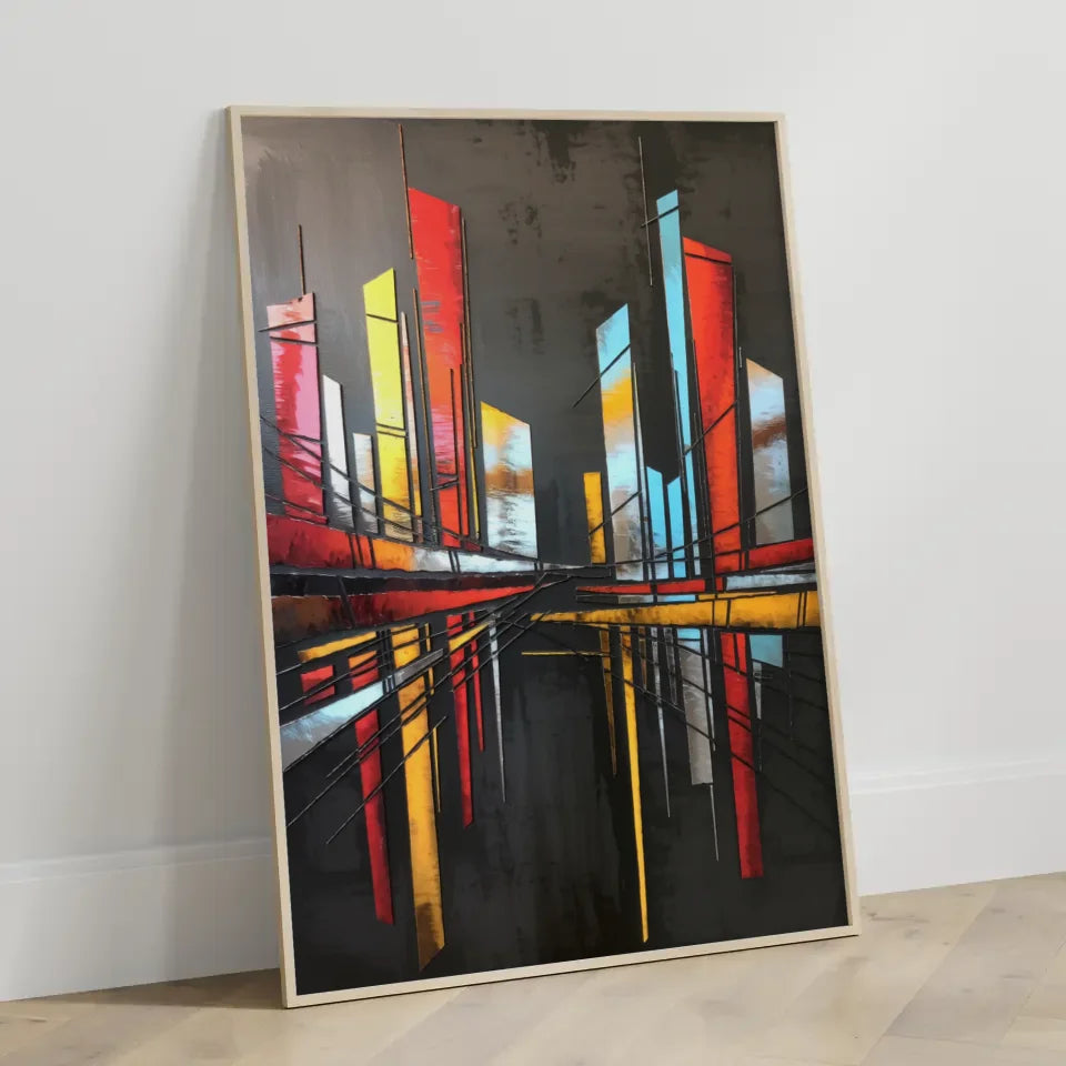 Gestalten Sie Ihre Wohn- oder Arbeitsräume mit diesen inspirierenden Postern und erleben Sie, wie sie die Atmosphäre des Raumes verändern. Ideal für Kunstliebhaber und alle, die auf der Suche nach einem außergewöhnlichen Wohnaccessoire sind. Bringen Sie Farbe und Leben in Ihre Wände mit unserer raffinierten Kollektion von modernen Postern, die Stadtlandschaften in abstrakter Form darstellen.