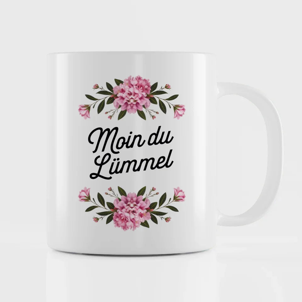 Moin du Lümmel Tasse mit Blumenmotiv und lustigem Spruch