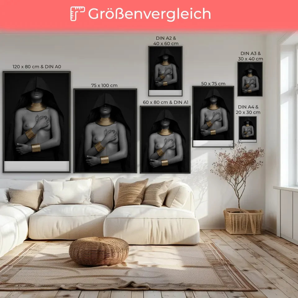 Der dunkle Hintergrund des Posters lĂ€sst die Details des Motives lebendig werden und verstĂ€rkt die geheimnisvolle Aura der dargestellten Frau. Egal, ob Sie nach einem Blickfang fĂŒr Ihr Wohnzimmer, ein Schlafzimmer oder ein kreatives Arbeitsumfeld suchen â dieses Poster bringt nicht nur Stil, sondern auch eine tiefere Bedeutung in jeden Raum. Holen Sie sich das monochrome Poster mit geheimnisvoller Frau und verwandeln Sie Ihre WĂ€nde in ein Kunstwerk, das zum Nachdenken anregt und GesprĂ€che ermöglicht.