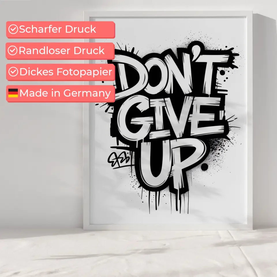 Motivierendes Poster Don't Give Up im Graffiti Stil für dein Zuhause
