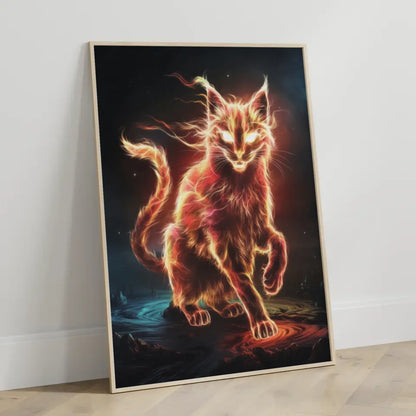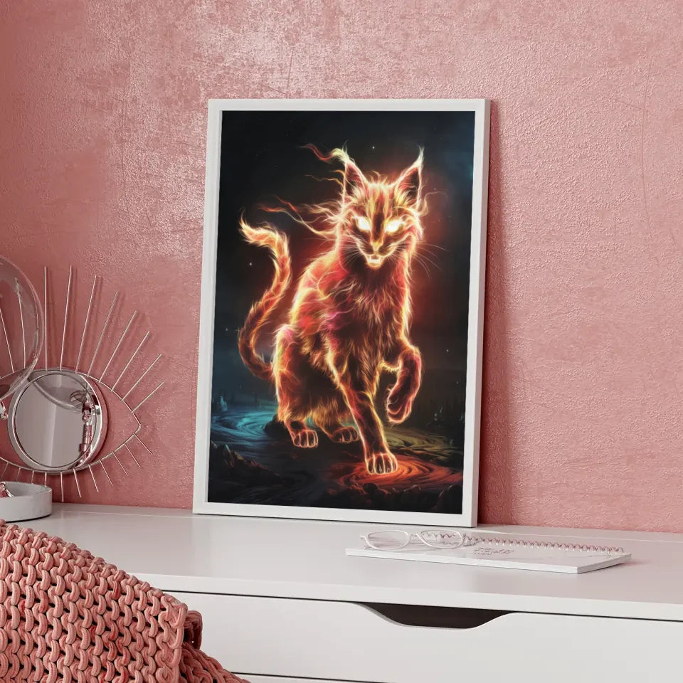 Mystische Feuerkatze Poster in leuchtenden Farben für magisches Ambiente