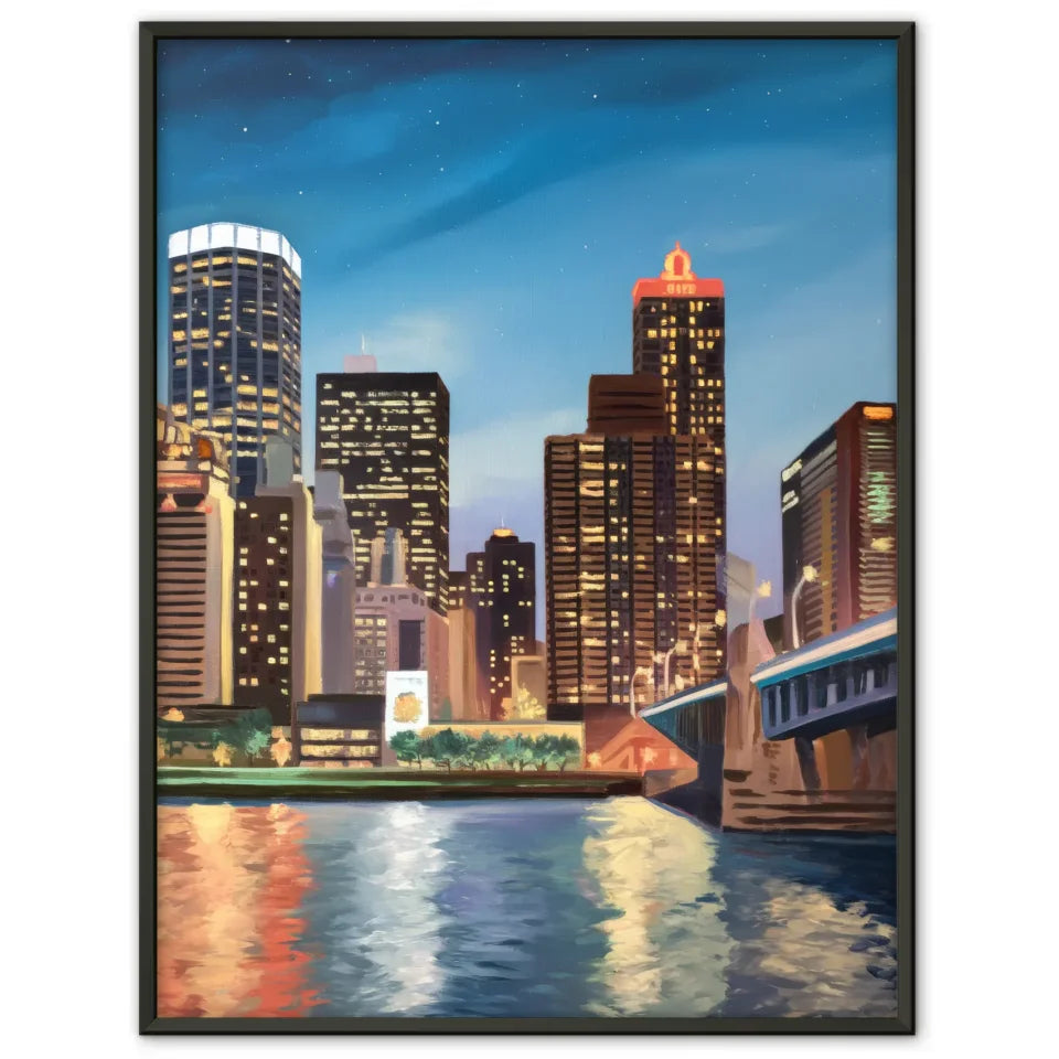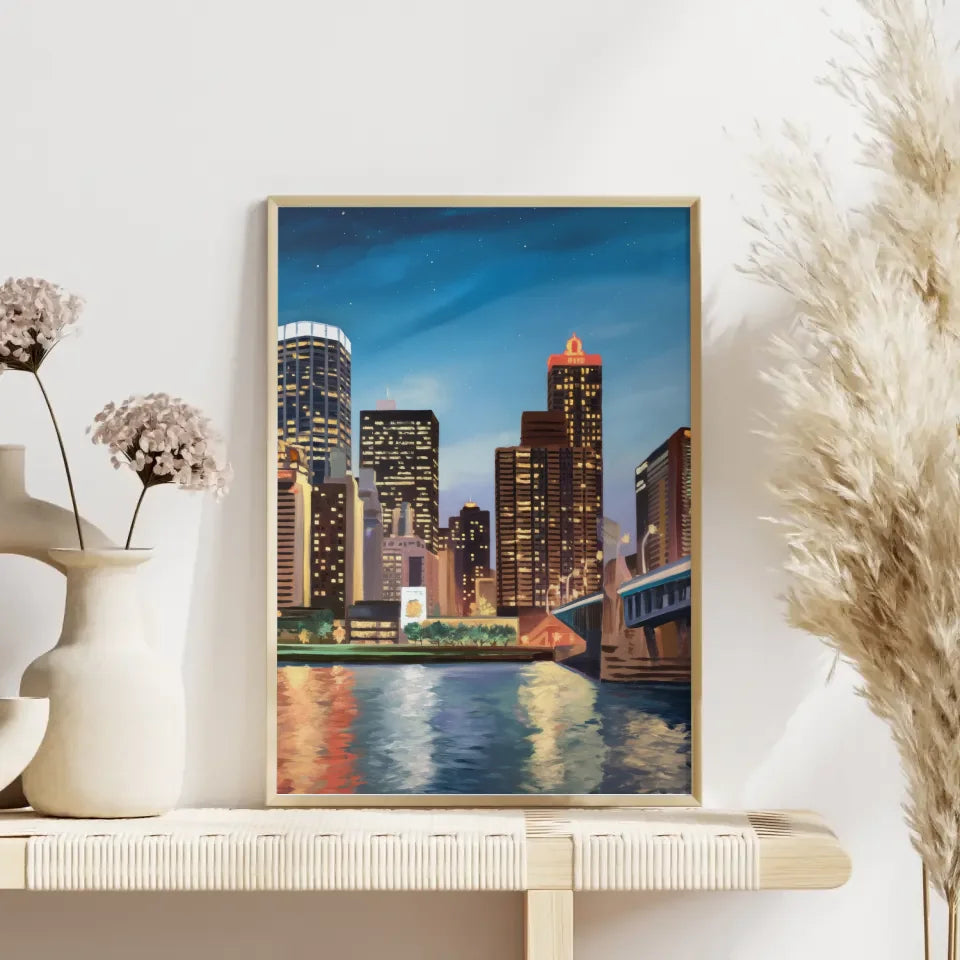 Nacht Skyline Poster mit Brücke und Stadtlichtern