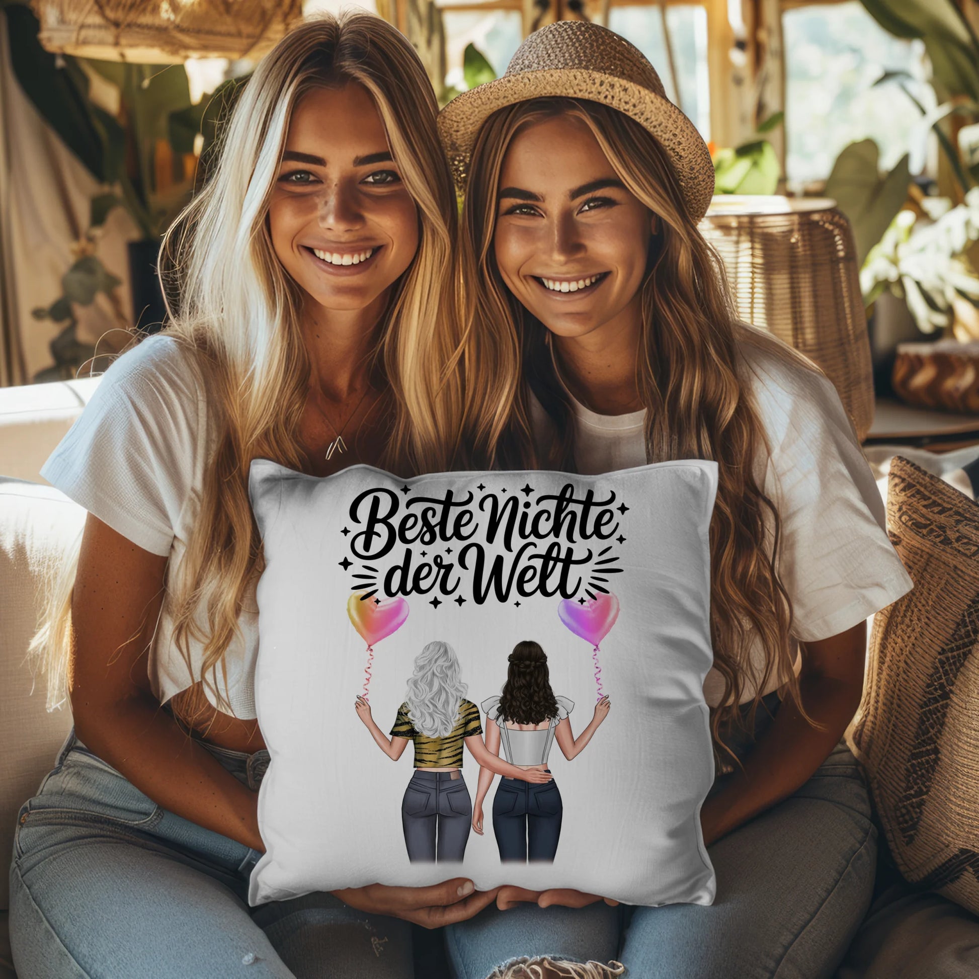 Namen Kissen Beste Nichte der Welt personalisierbar mit 2 Frauen