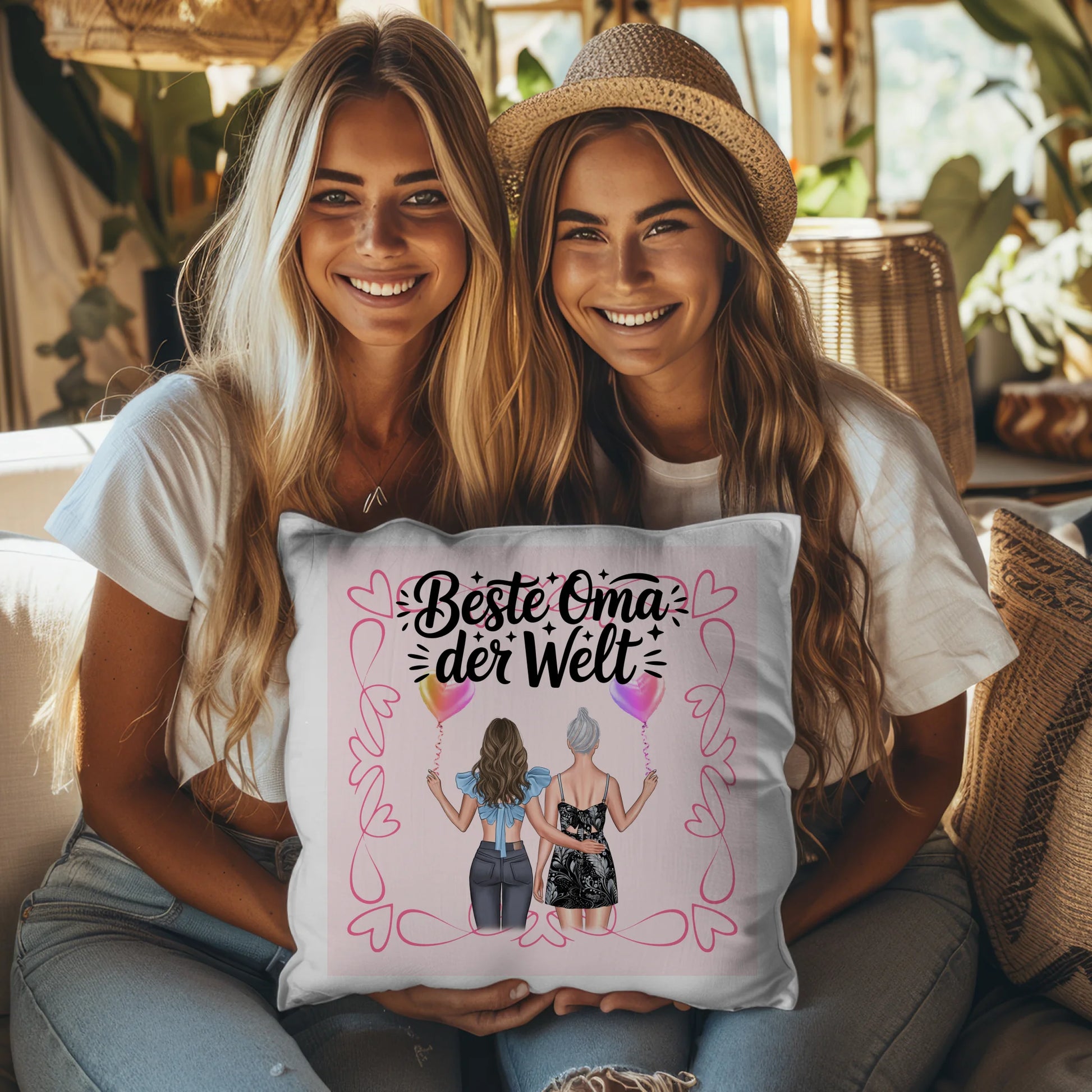 Namen Kissen Beste Oma Der Welt - personalisiert mit 2 Clipart Frauen