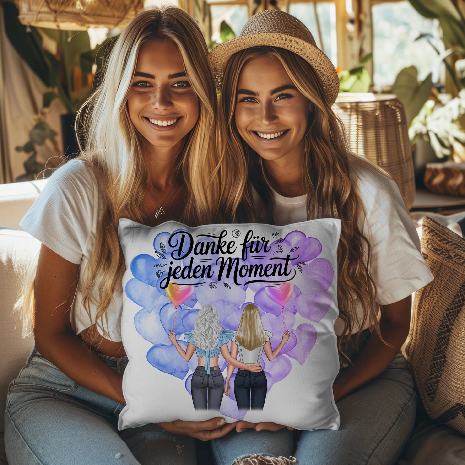 Namen Kissen Cousine Danke für jeden Moment mit 2 Clipart Frauen Hintergrund & Wunschtext
