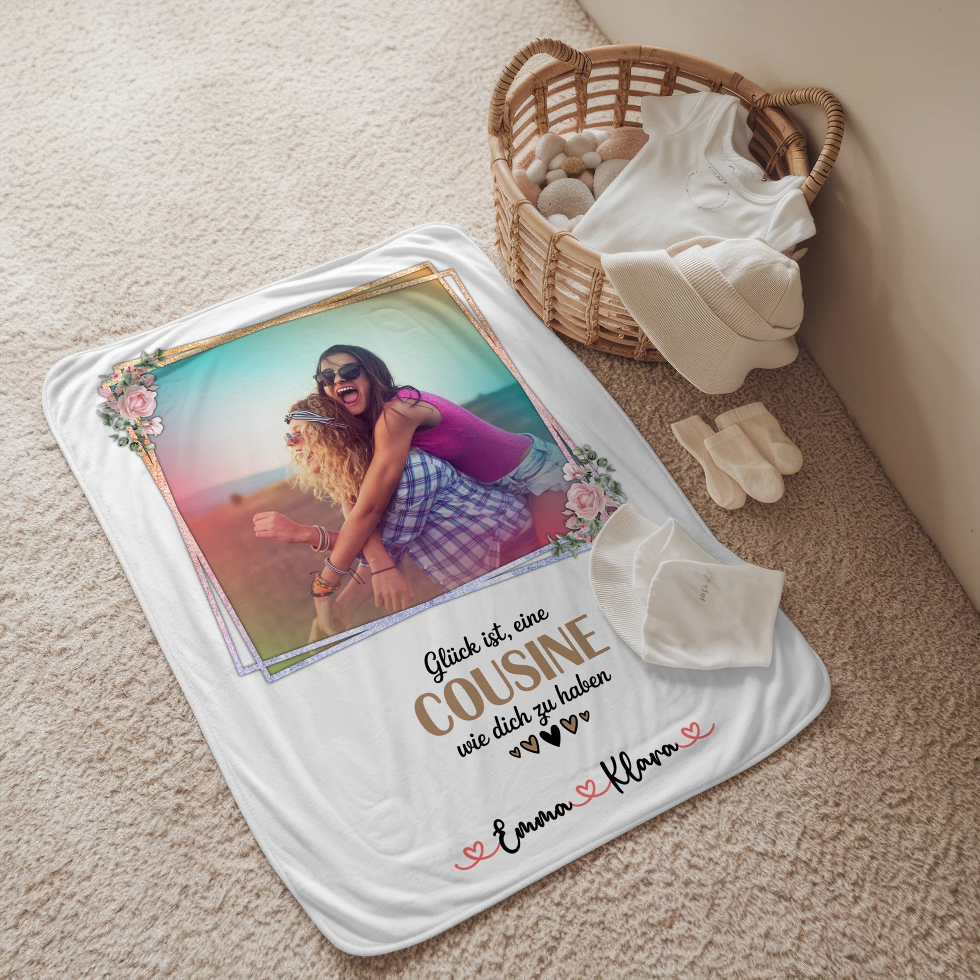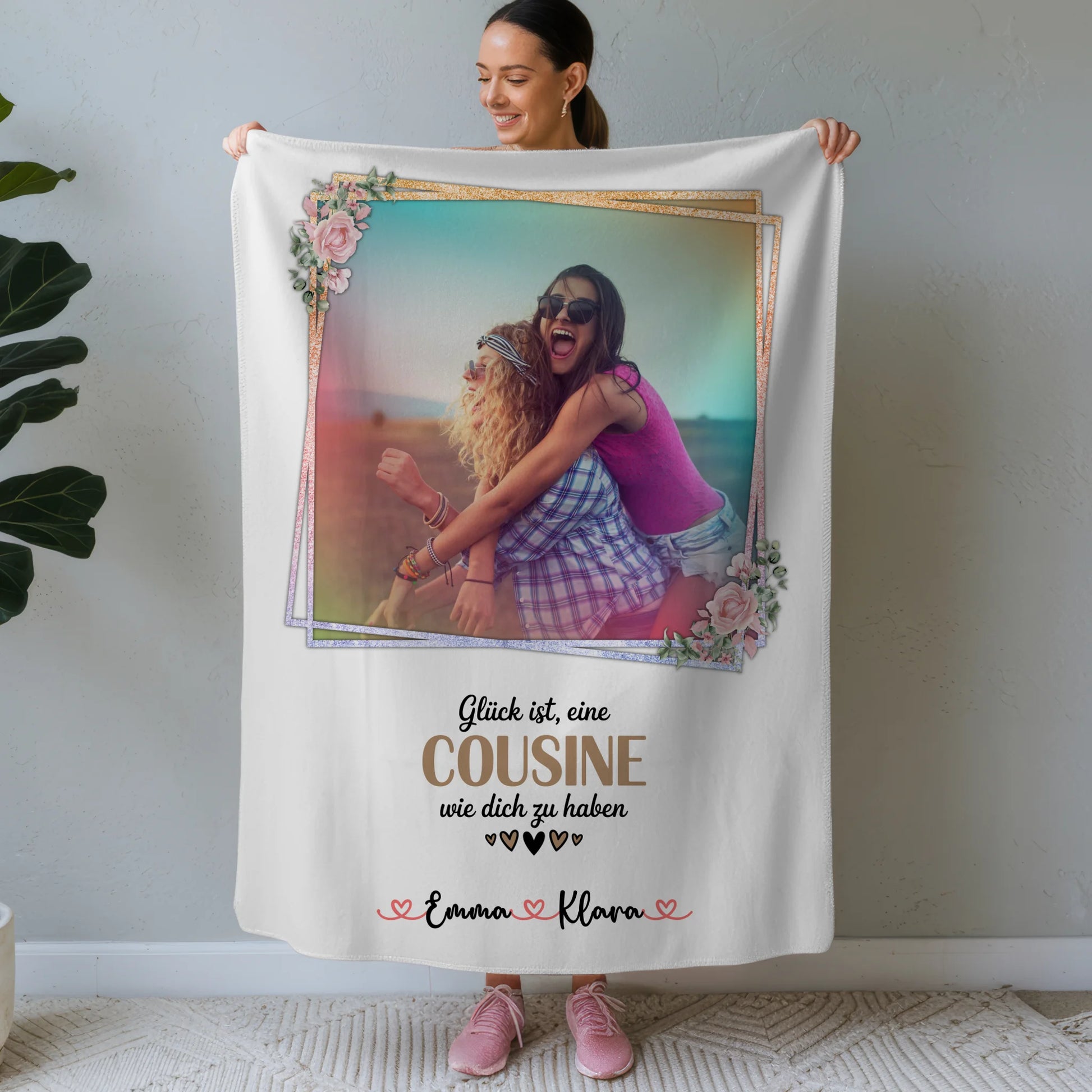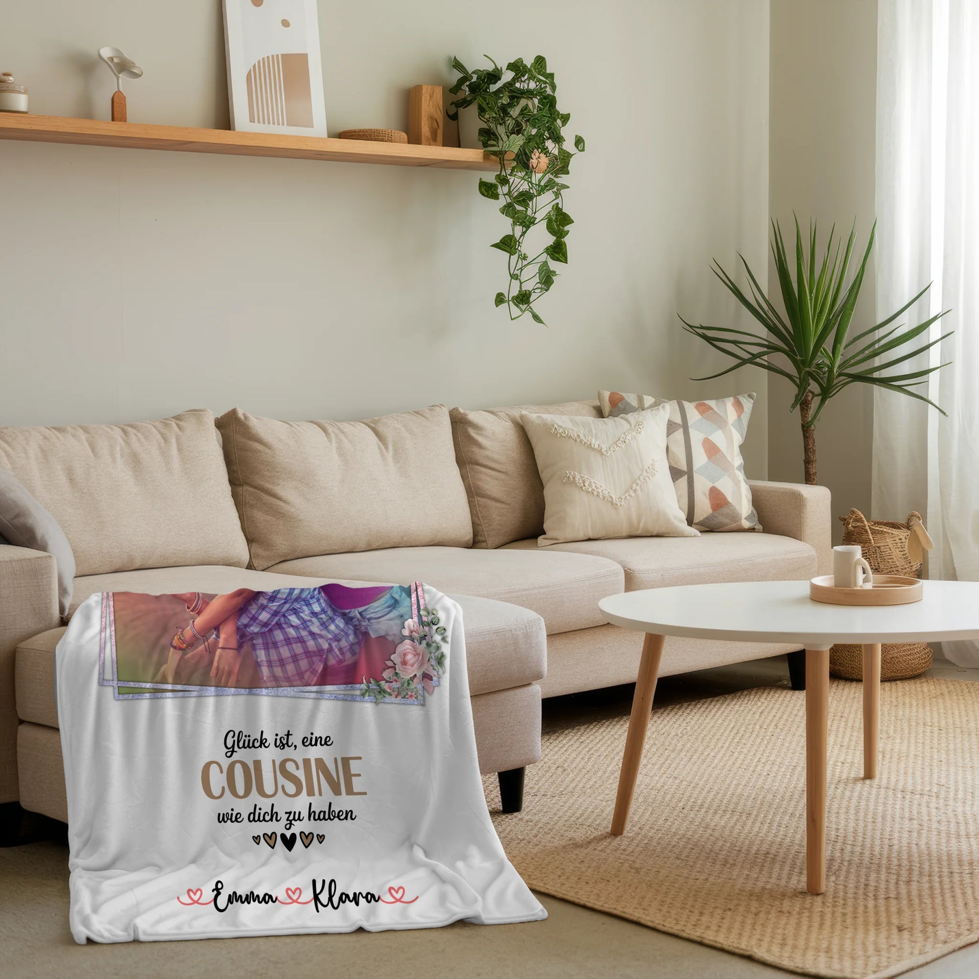 Namensdecke für Cousine mit Foto, Namen & Wunschtext, Glück Ist eine Cousine wie dich