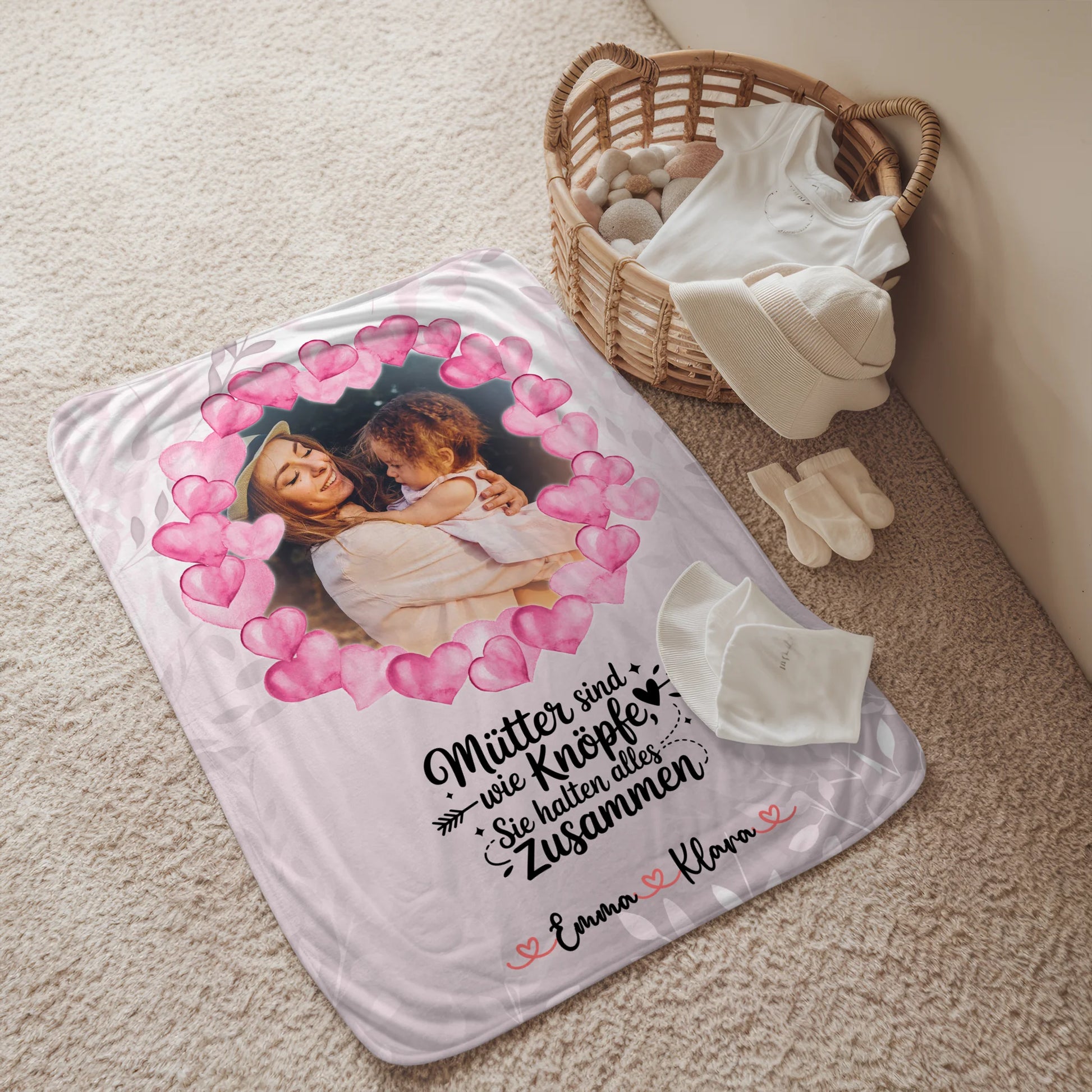 Ideal als Geschenk für Mama zum Muttertag, wenn Du eine persönliche Decke mit Foto und Namen suchst. Die Namensdecke mit Foto ist ein emotionales, personalisiertes Geschenk zum Muttertag, das Wärme und Erinnerung vereint.