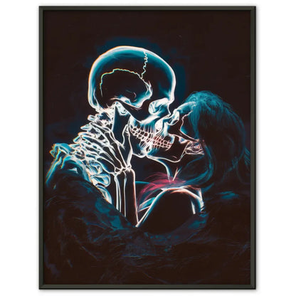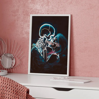 Neon Schädel Poster für romantische Küsse im dunklen Abgrund