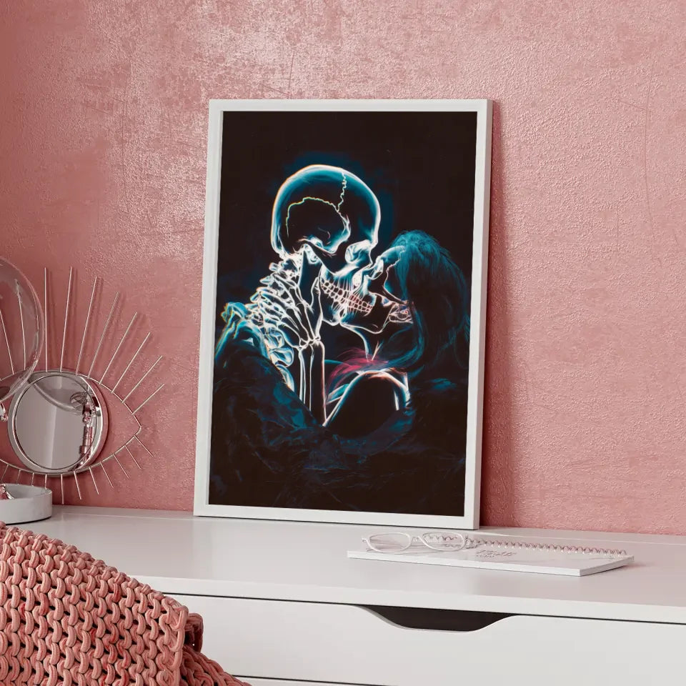 Verleihen Sie Ihrer Wand einen Hauch von Kunst und Emotion mit diesem auffälligen Poster, das nicht nur die Liebe zwischen Paaren zelebriert, sondern auch eine geheimnisvolle und unheimliche Stimmung vermittelt. Ob als Geschenk oder zur Eigenverwendung – das Neon Schädel Poster ist eine kreative Ergänzung für jedes Zuhause.