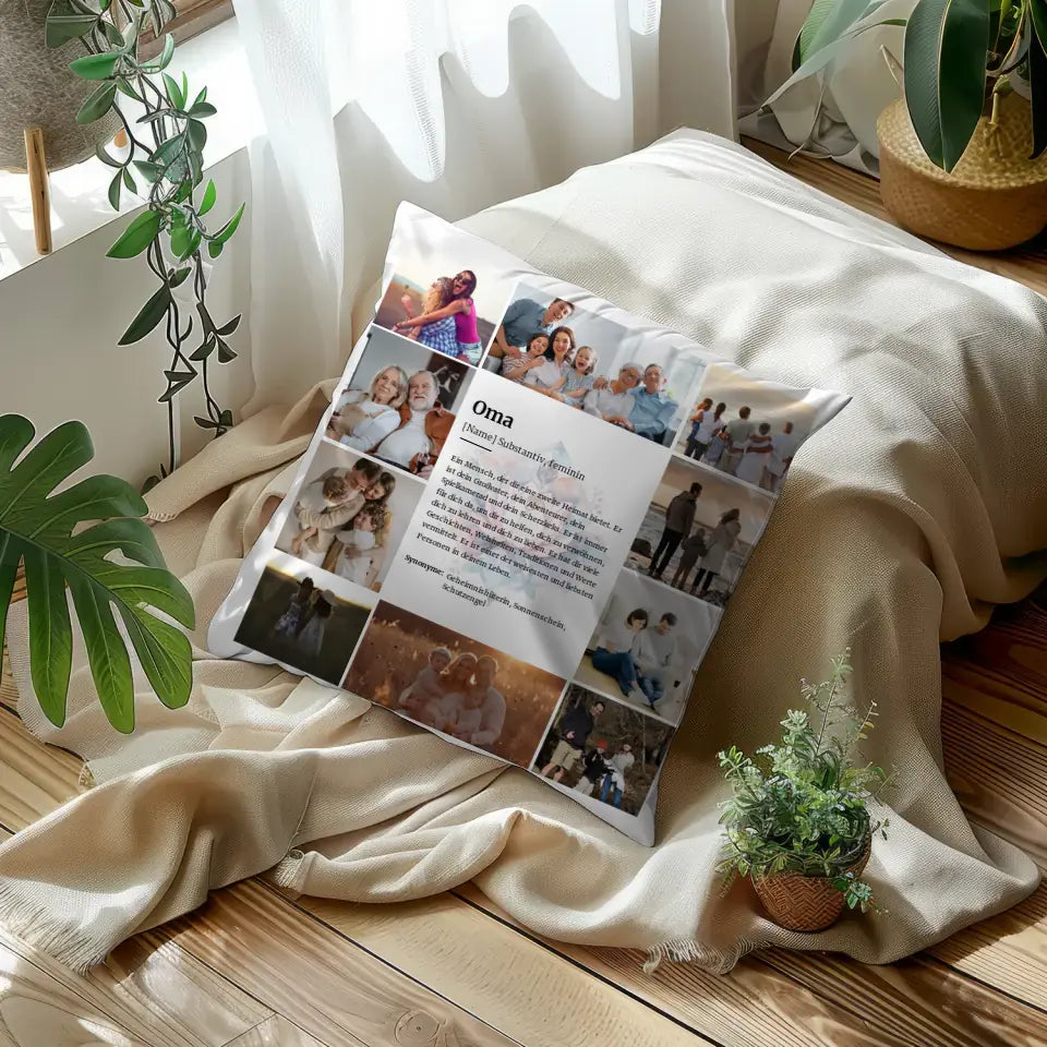 Oma Definition Kissen personalisiert für 10 Fotos Herzliches Geschenk