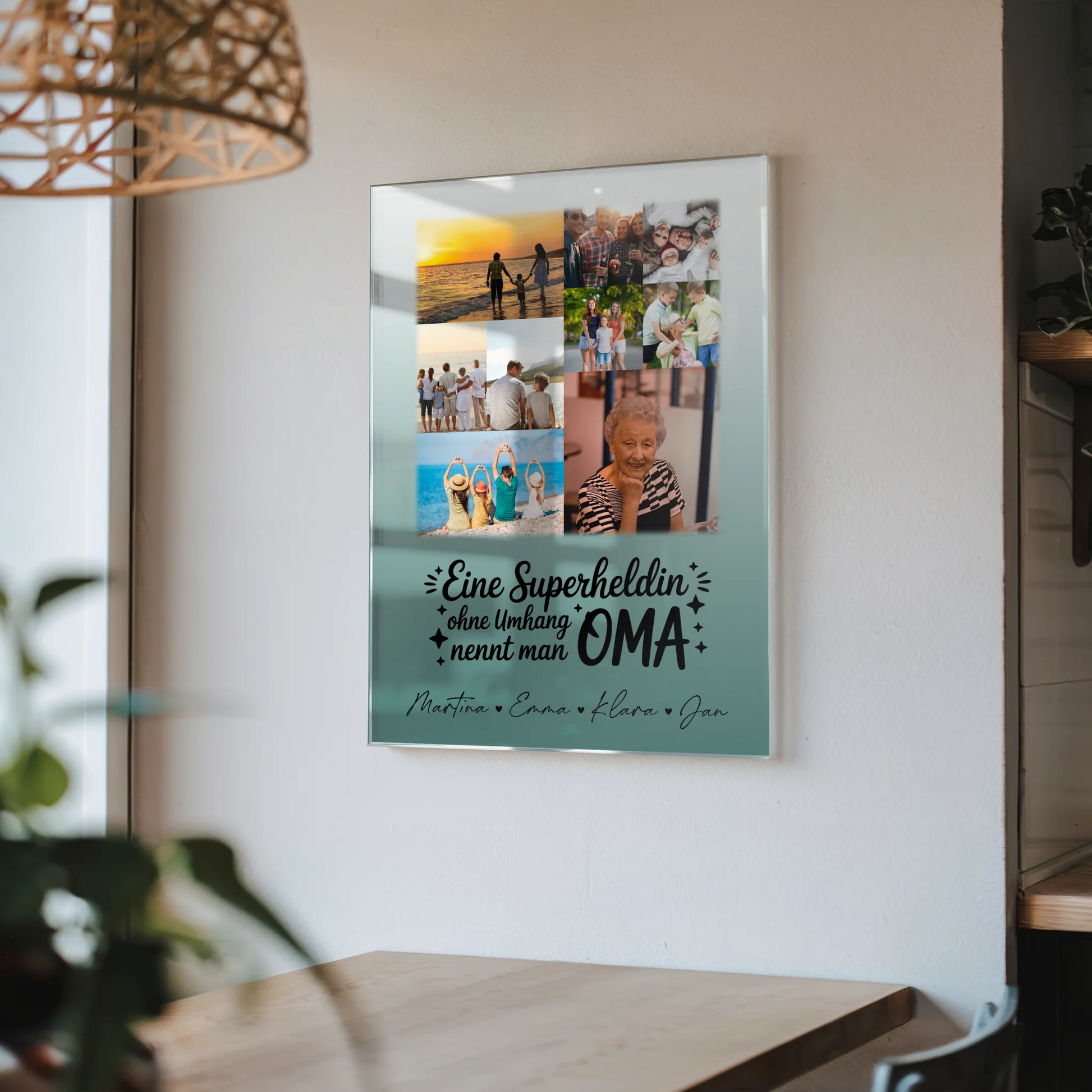 Personalisierte Geschenkidee: Oma Plakat Acrylglas Bild mit 9 Fotos Lehrerin echte Heldin