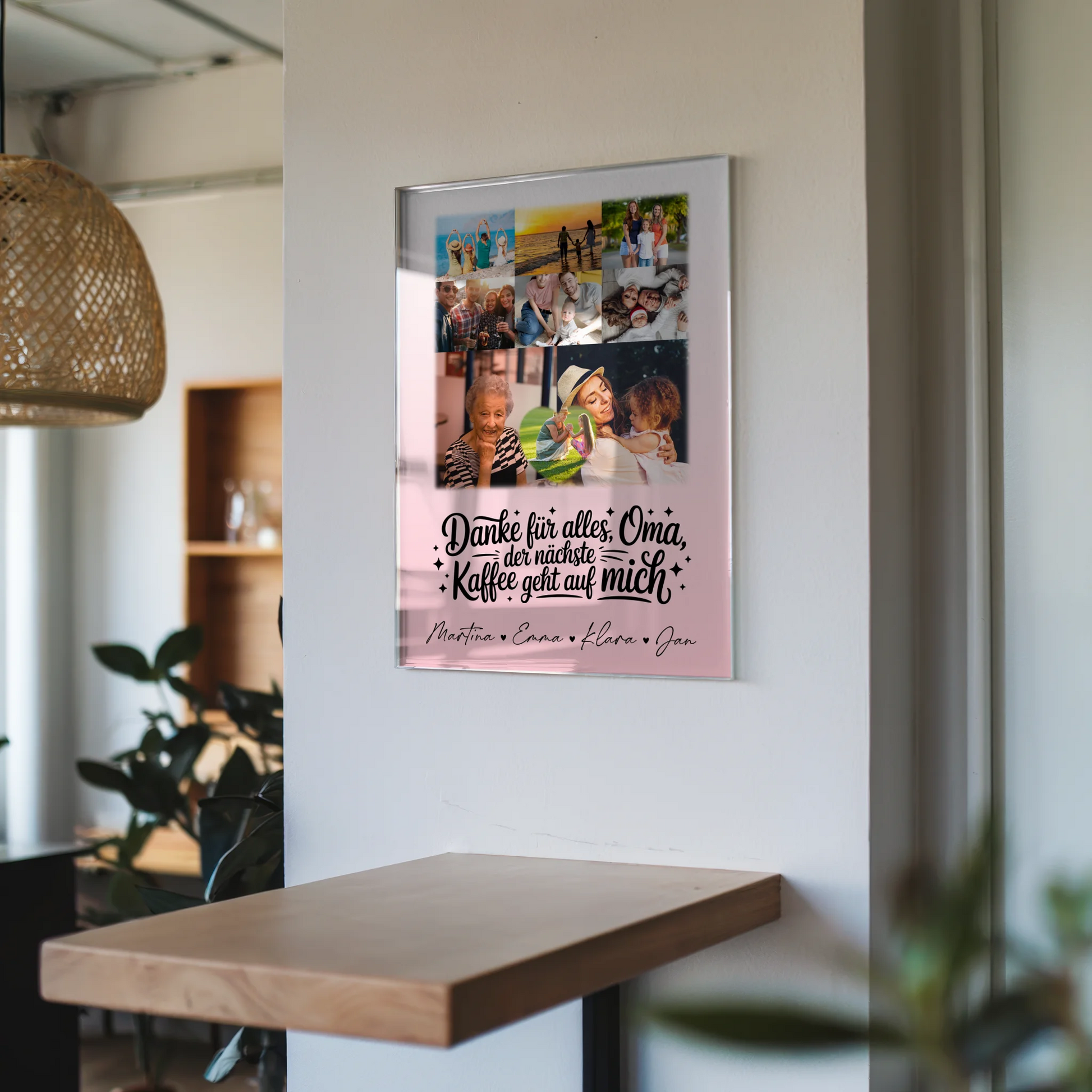Oma Plakat mit 8 Fotos und Herz Dankesgeschenk Kaffee geht auf mich personalisiert