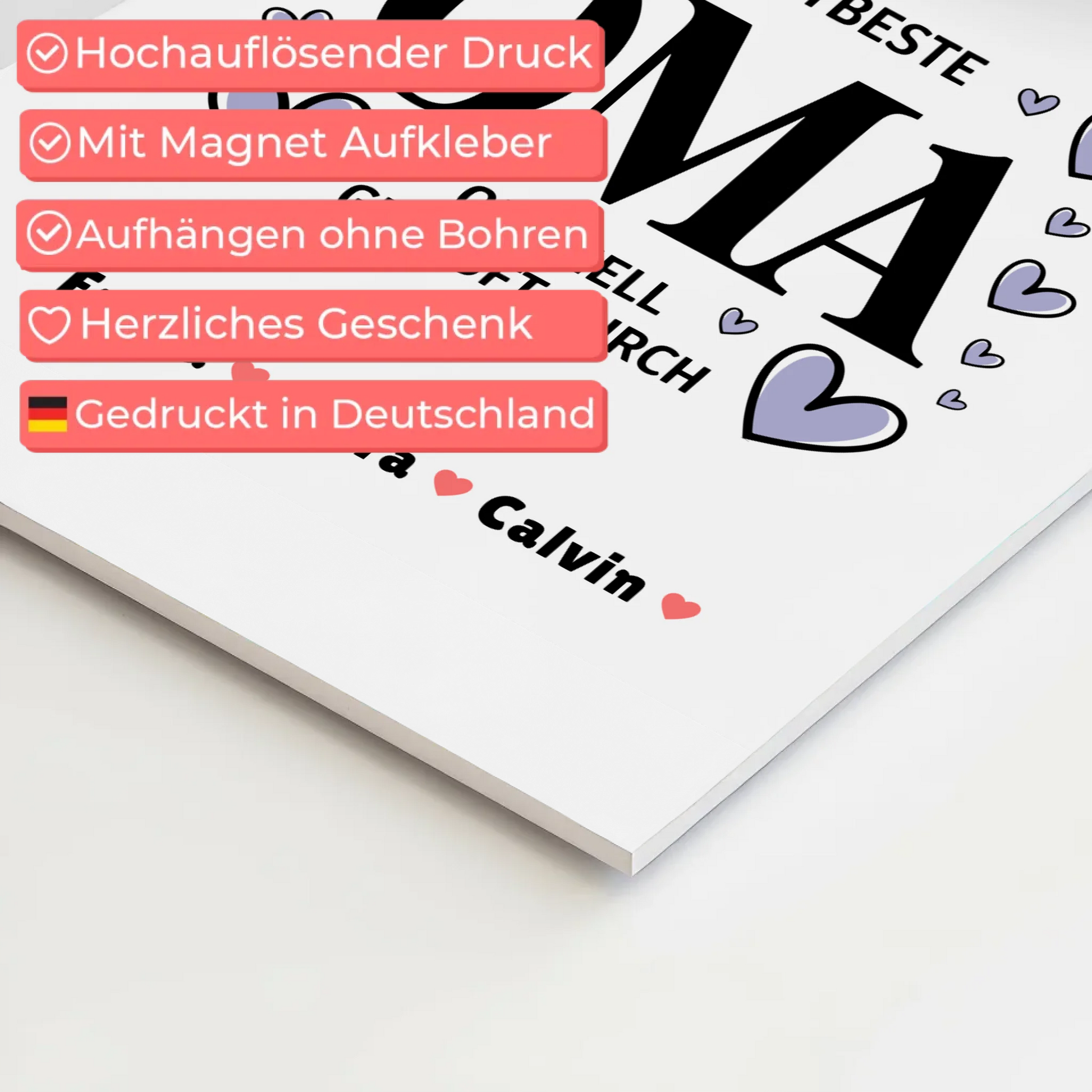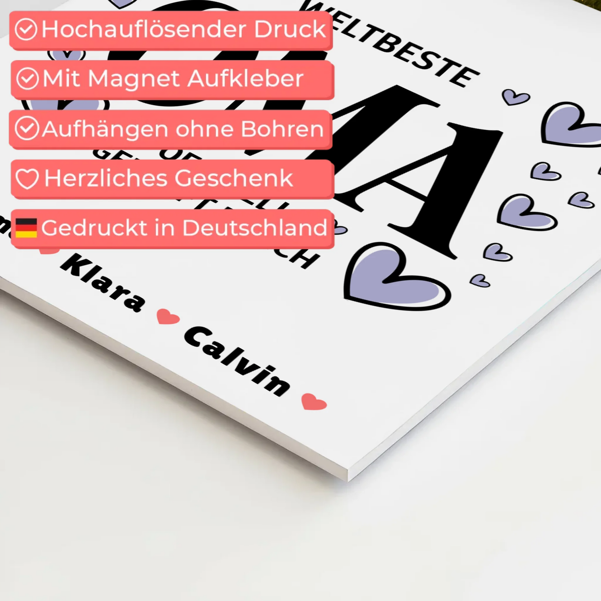 Personalisierte Oma Plakat - Weltbeste Oma Offiziell Geprüft Durch - Das perfekte Geschenk für Oma