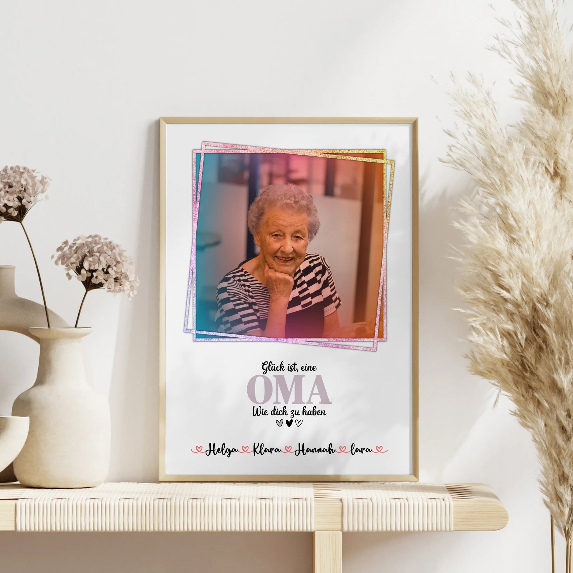 Oma Plakat Poster: Glück ist eine Oma wie dich zu haben mit Foto, Namen & Wunschtext