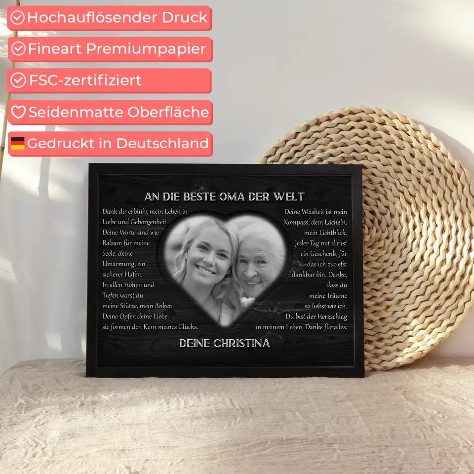 Unser Oma Poster personalisiert Vintage DANKE Schwarz Weiß