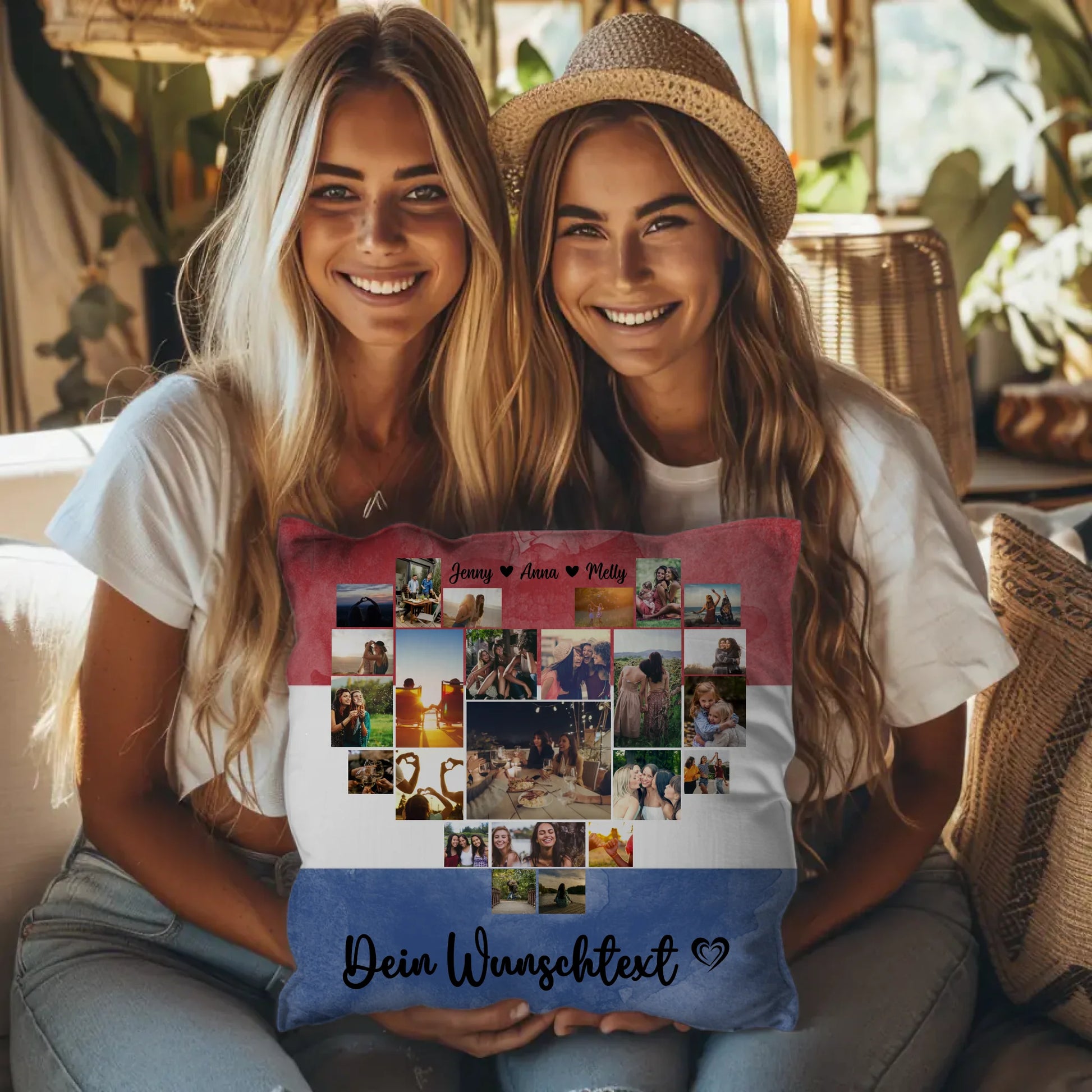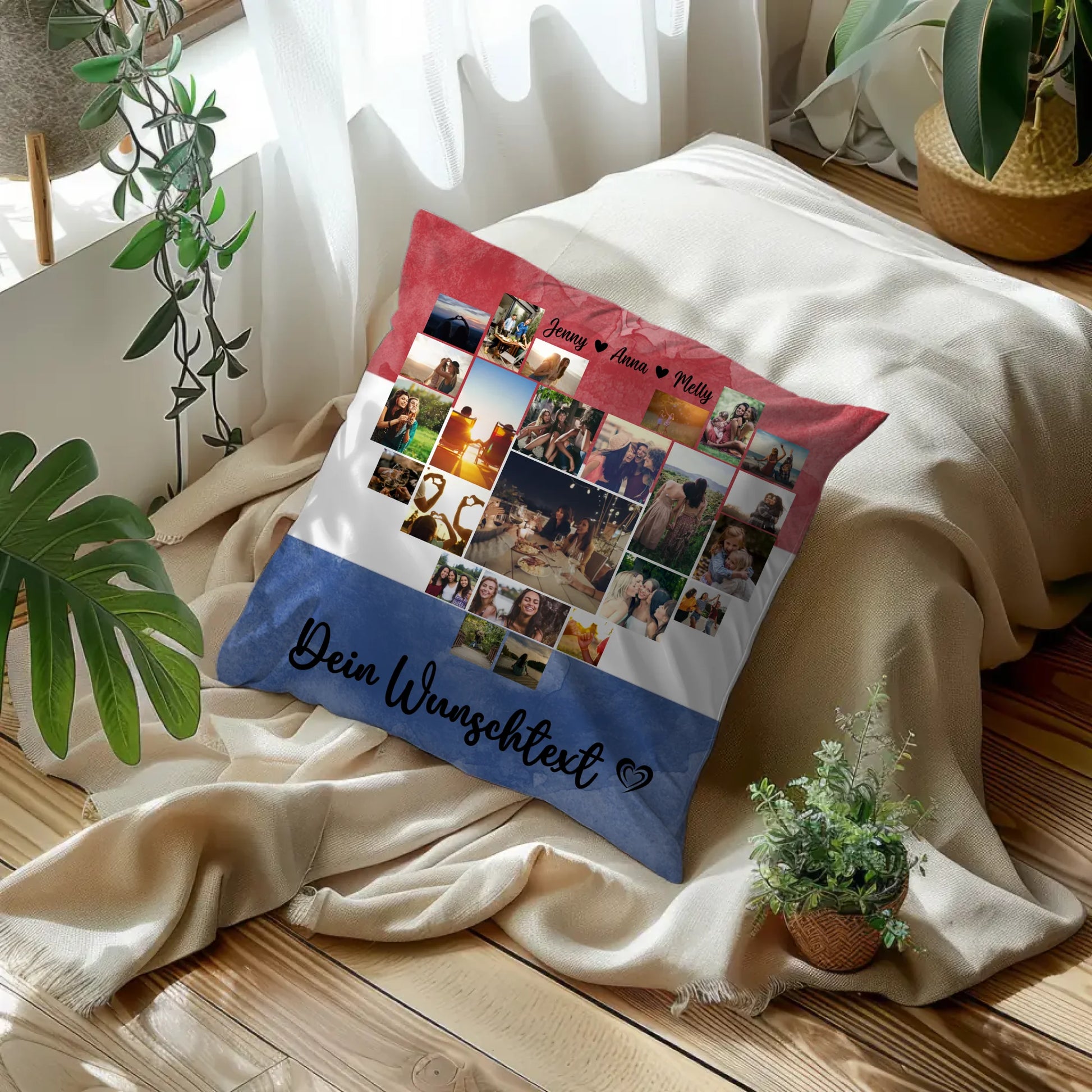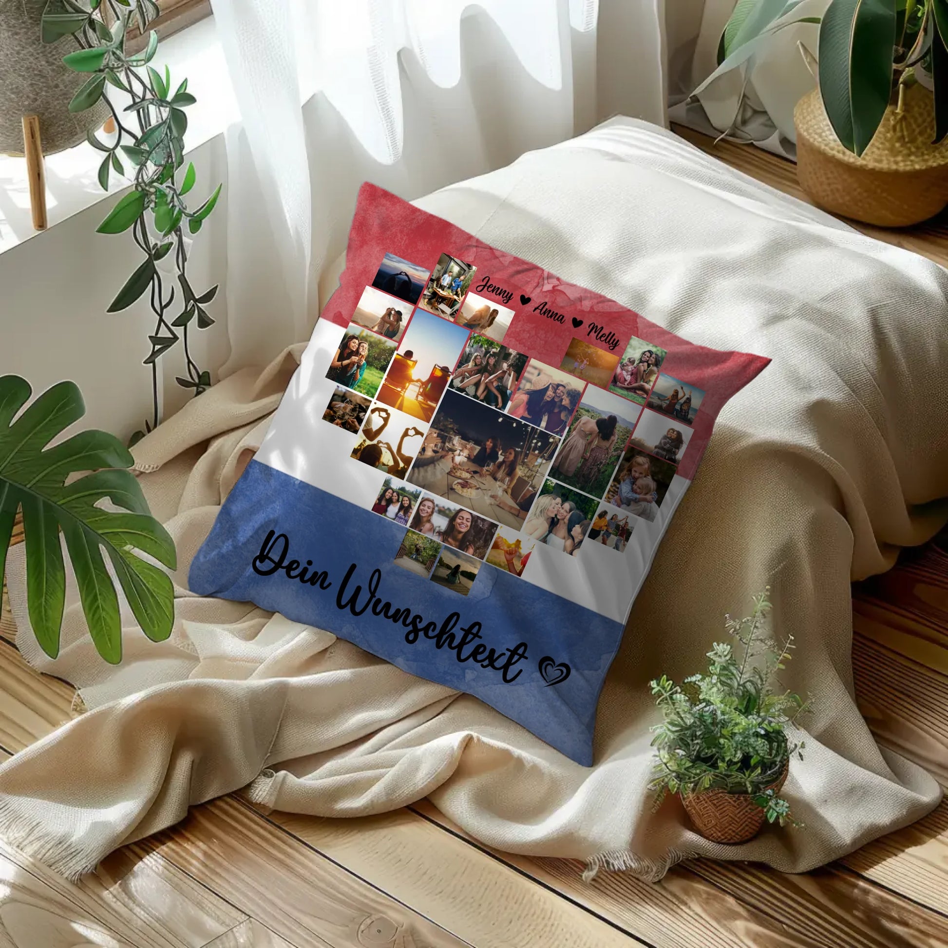 Entdecke das perfekte Geschenk für deinen Schatz mit unserem Paar Fotokissen Urlaub Erinnerung Niederlande personalisiert! Dieses einzigartige Kissen ist nicht nur ein wunderschönes Dekorationsstück, sondern auch eine emotionale Erinnerung an eure schönsten Momente. Du kannst es ganz nach euren Wünschen gestalten: personalisiere die Namen, wähle aus über 20+ Fotos für eine persönliche Fotocollage, füge ein besonderes Hintergrundbild hinzu und ergänze einen eigenen Spruch oder Wunschtext.