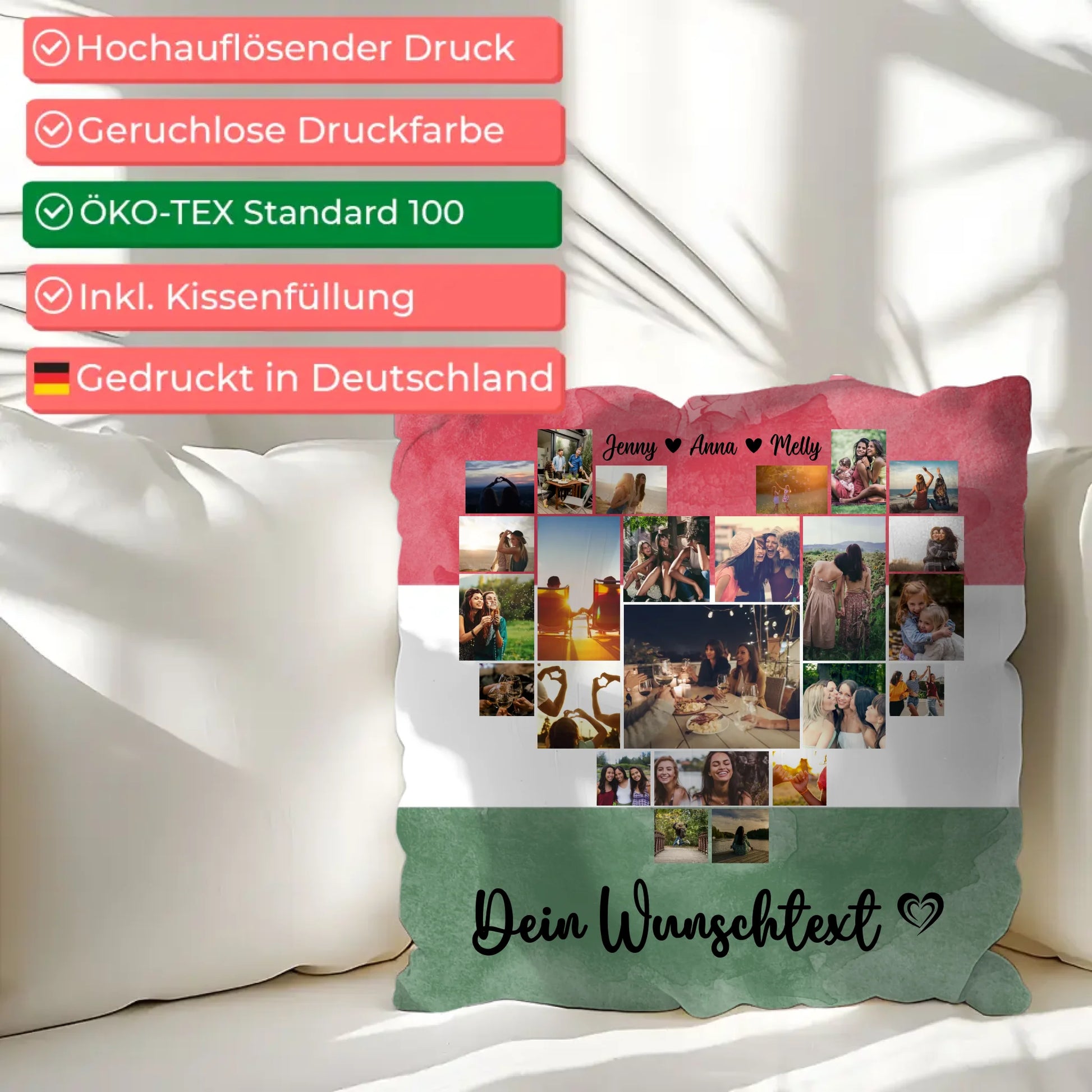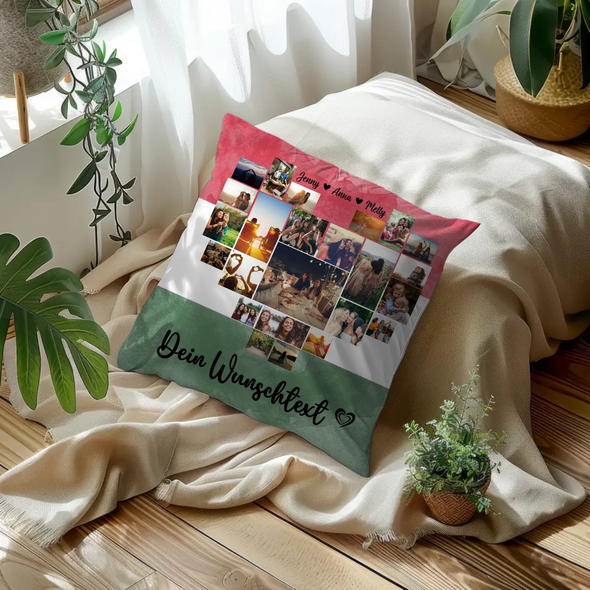 Überrasche deinen Partner mit einem einzigartigen Paar Fotokissen, das nicht nur schön aussieht, sondern auch voller persönlicher Erinnerungen steckt. Dieses personalisierte Kissen ist die perfekte Geschenkidee für den Valentinstag und eignet sich hervorragend, um eure gemeinsamen Urlaubserinnerungen in einer kreativen Fotocollage festzuhalten. Ihr könnt aus über 20+ Fotos wählen und das Design mit euren eigenen Namen, einem individuellen Hintergrundbild sowie einem persönlichen Spruch oder Wunschtext verfeinern.