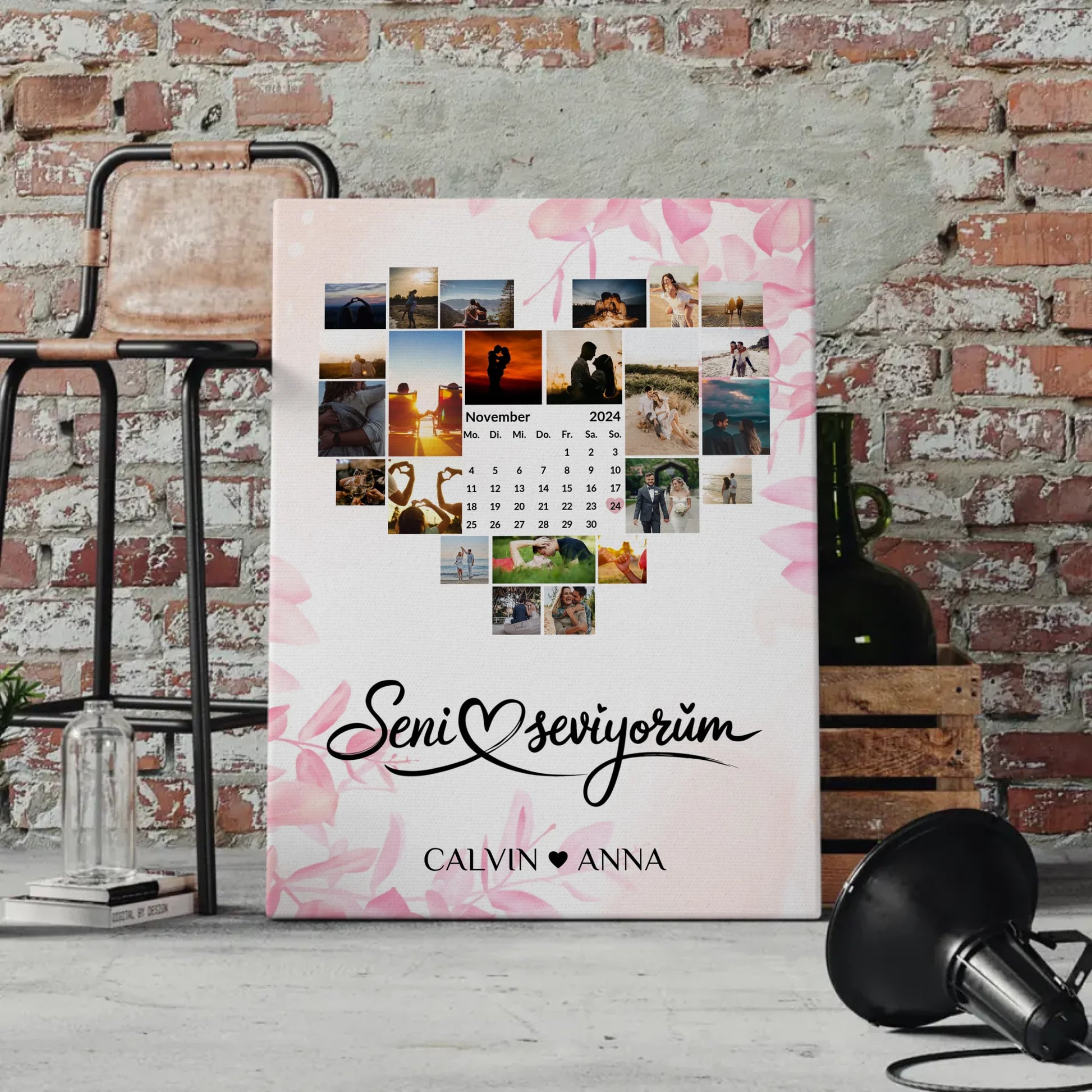Du suchst nach dem perfekten Geschenk für deine Liebste? Unsere Paar Fotoleinwand Fotocollage Seni Seviyorum ist die ideale Wahl! Diese personalisierte Leinwand vereint über 20+ Fotos der schönsten gemeinsamen Erinnerungen und sorgt für einen unvergesslichen Blickfang in deinem Zuhause. Mit der Möglichkeit, die Namen, das Datum und sogar ein individuelles Hintergrundbild hinzuzufügen, wird diese Personalisiertes Leinwand Liebe zu einem einzigartigen Kunstwerk.
