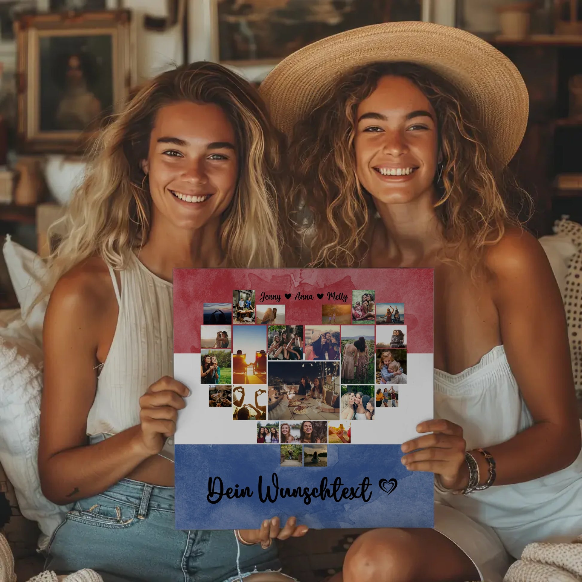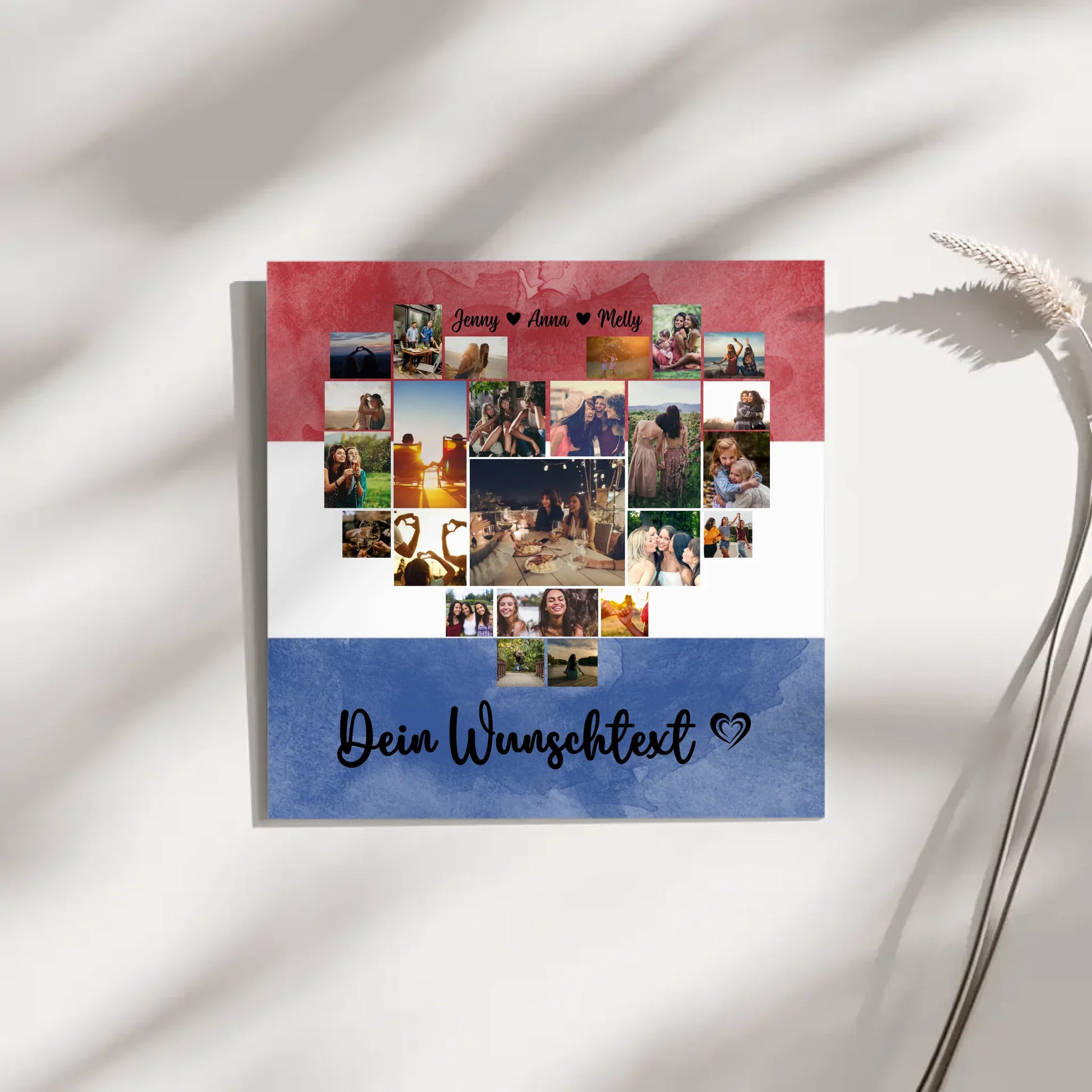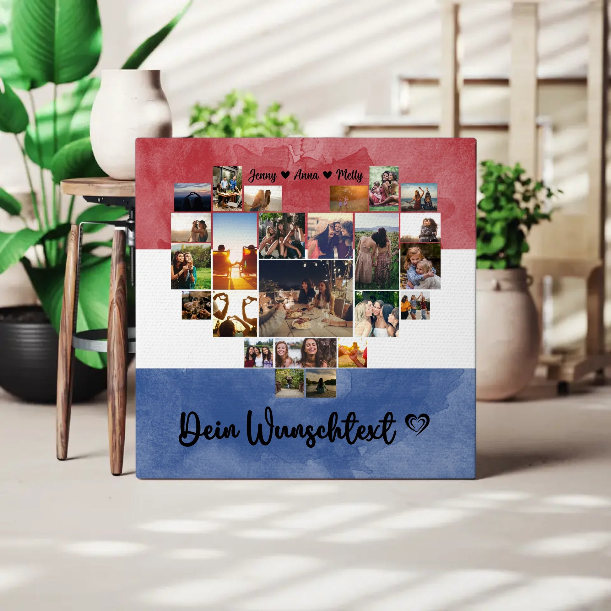 Entdecke die perfekte Geschenkidee für Paare mit unserer Paar Fotoleinwand Urlaub Erinnerung Niederlande personalisiert. Halte die schönsten Momente eures gemeinsamen Urlaubs fest und verleih deinem Zuhause einen ganz besonderen Charme. Diese einzigartige Fotocollage ermöglicht es dir, über 20+ Fotos von euren Reisen und unvergesslichen Urlaubserinnerungen auszuwählen, die perfekt in einem stilvollen Design vereint werden.