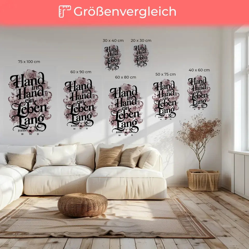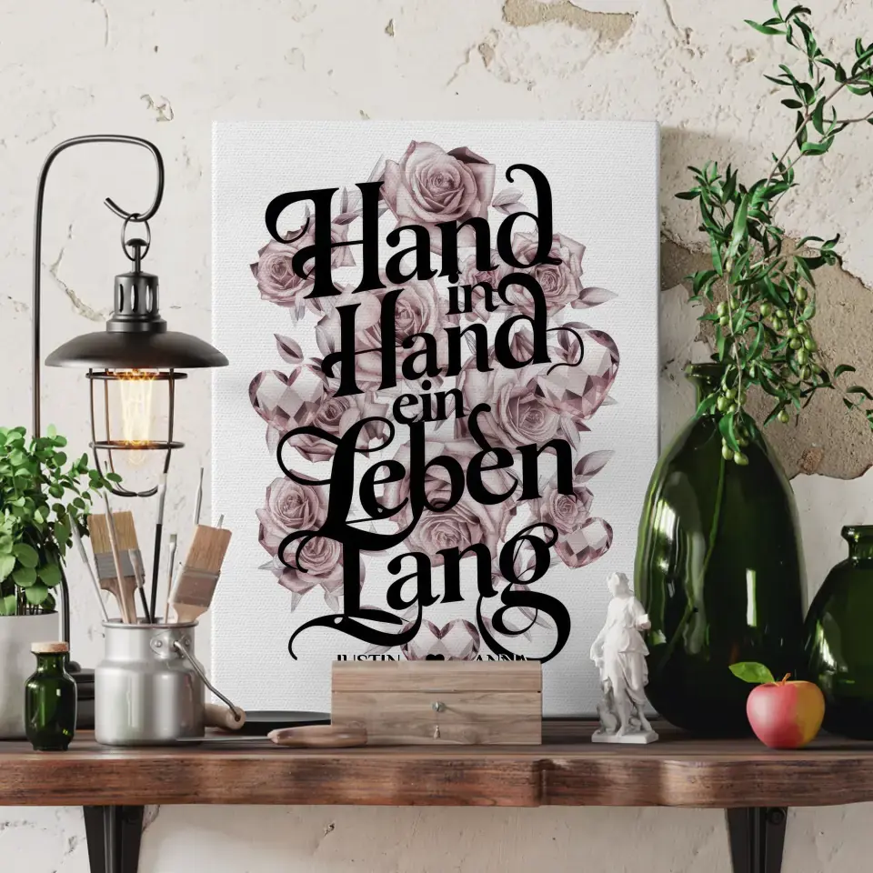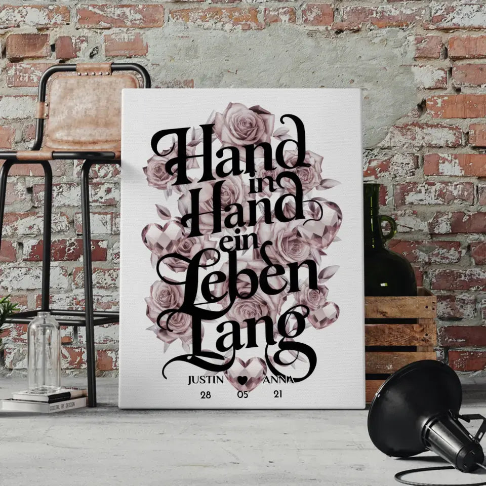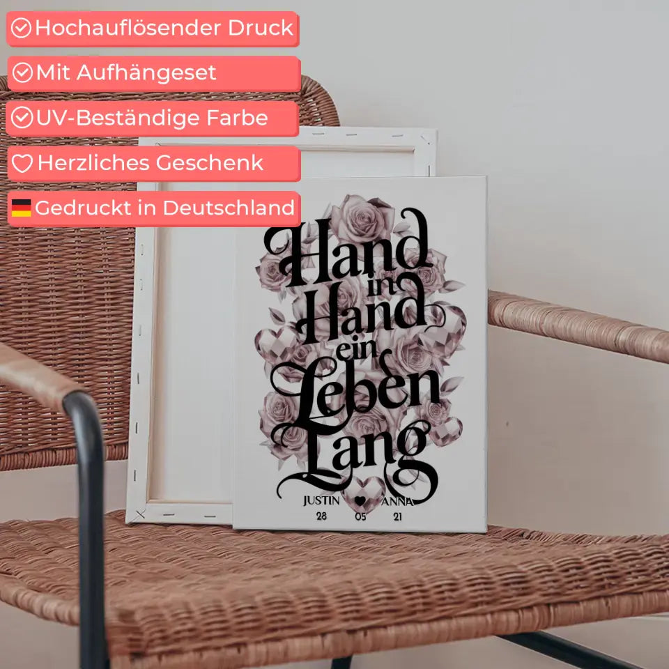 Paar Leinwand Hand In Hand Ein Leben Lang personalisiert Geschenk