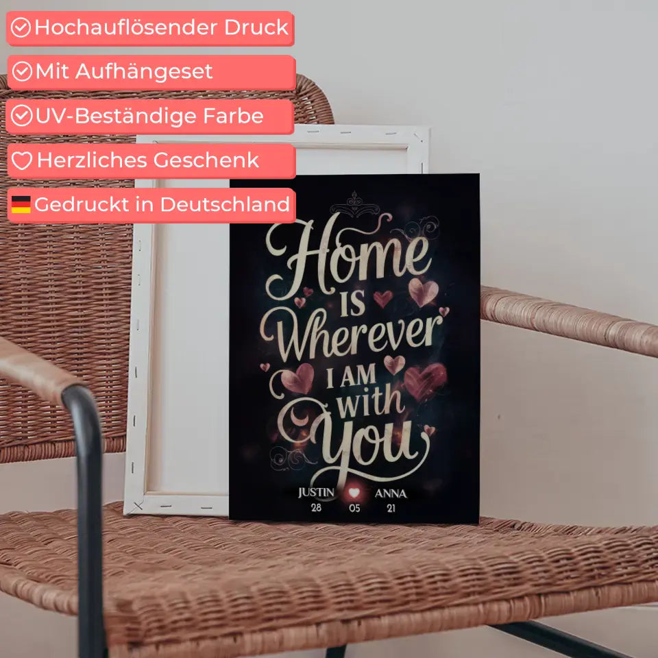 Unsere Paar Leinwand Home Is Wherever I Am With You personalisiert