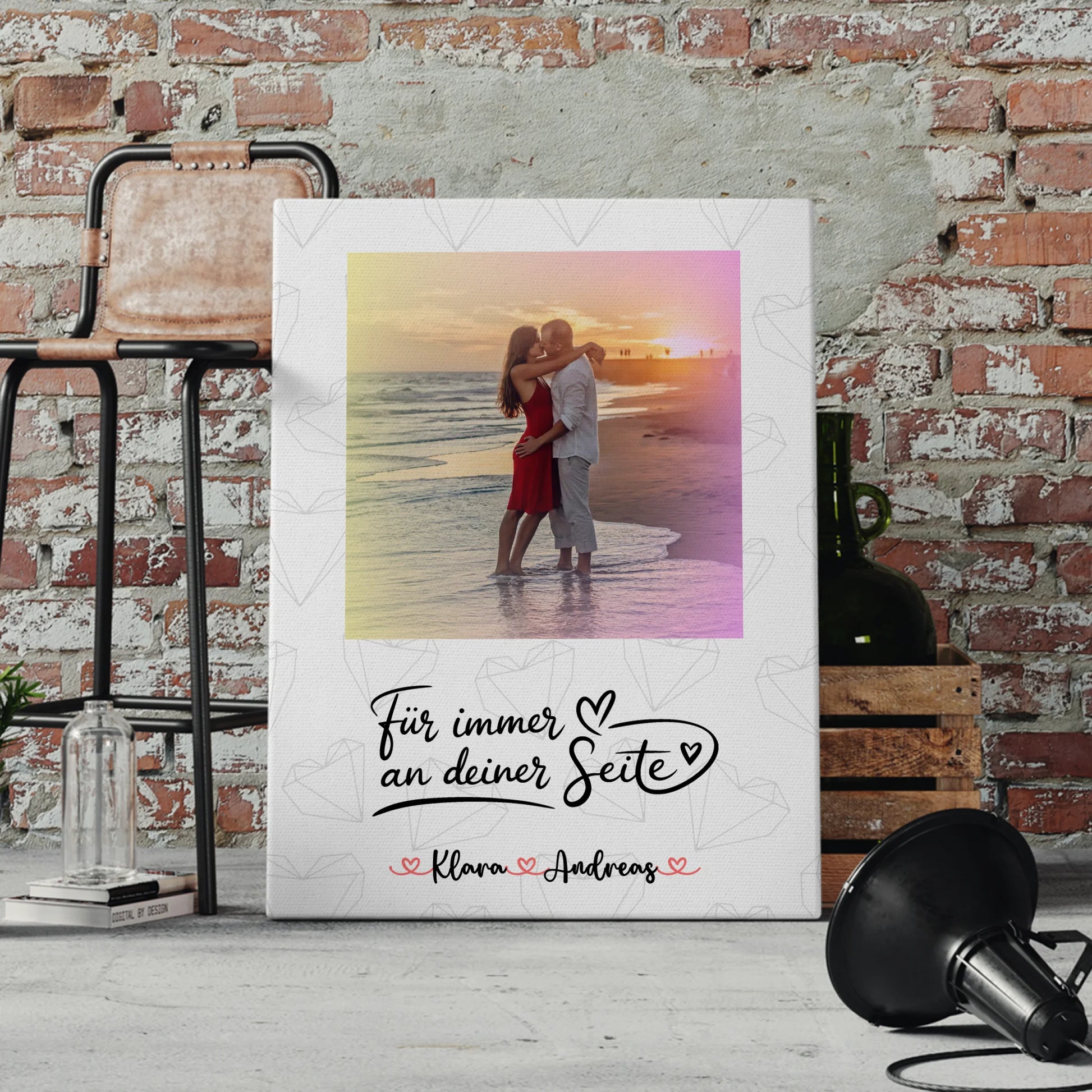 Du suchst ein persönliches, emotionales Geschenk zum Valentinstag, das eure Verbindung zeigt und jeden Raum aufwertet? Mit dieser personalisierten Leinwand für Paare gestaltest du ein Unikat, das dein schönstes Foto, individuelle Namen und einen eigenen Wunschtext vereint und so zu einem täglichen Erinnerungsstück wird.