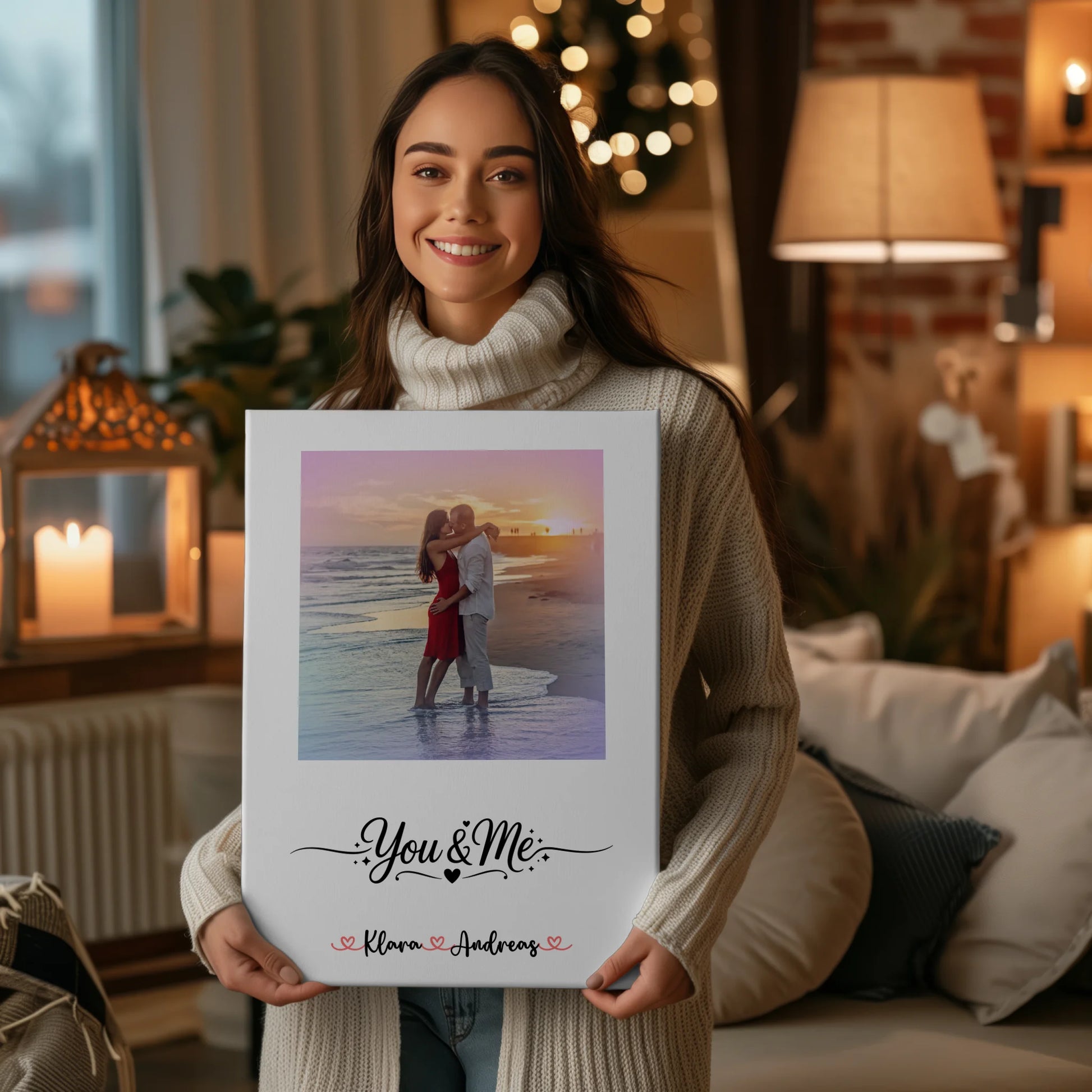 Die Leinwand verbindet hochwertige Optik mit persönlicher Note: Foto, Namen und Spruch werden zu einem modernen Wohnaccessoire, das sich gut ins Zuhause einfügt und Erinnerungen sichtbar macht. Gestalte deine Leinwand in wenigen Schritten und setze eure Liebe eindrucksvoll in Szene.