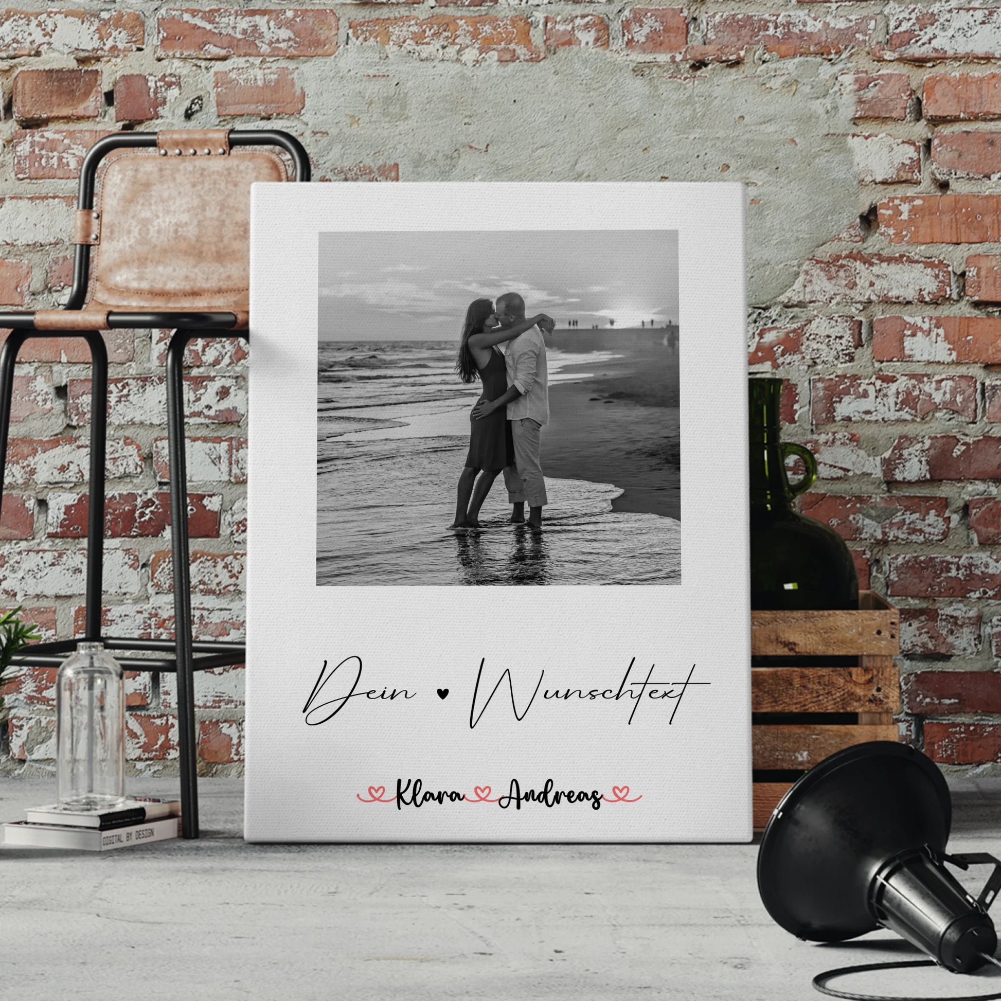 Erstelle eine zeitlose Erinnerung mit dieser Pärchen Leinwand mit Foto, Wunschtext & Namen personalisiert Black & White: eine stilvolle, personalisierte Leinwand für Paare zum Valentinstag, die Foto, Namen und persönliche Worte vereint und in schwarz weiß oder in Farbe wirkt.
