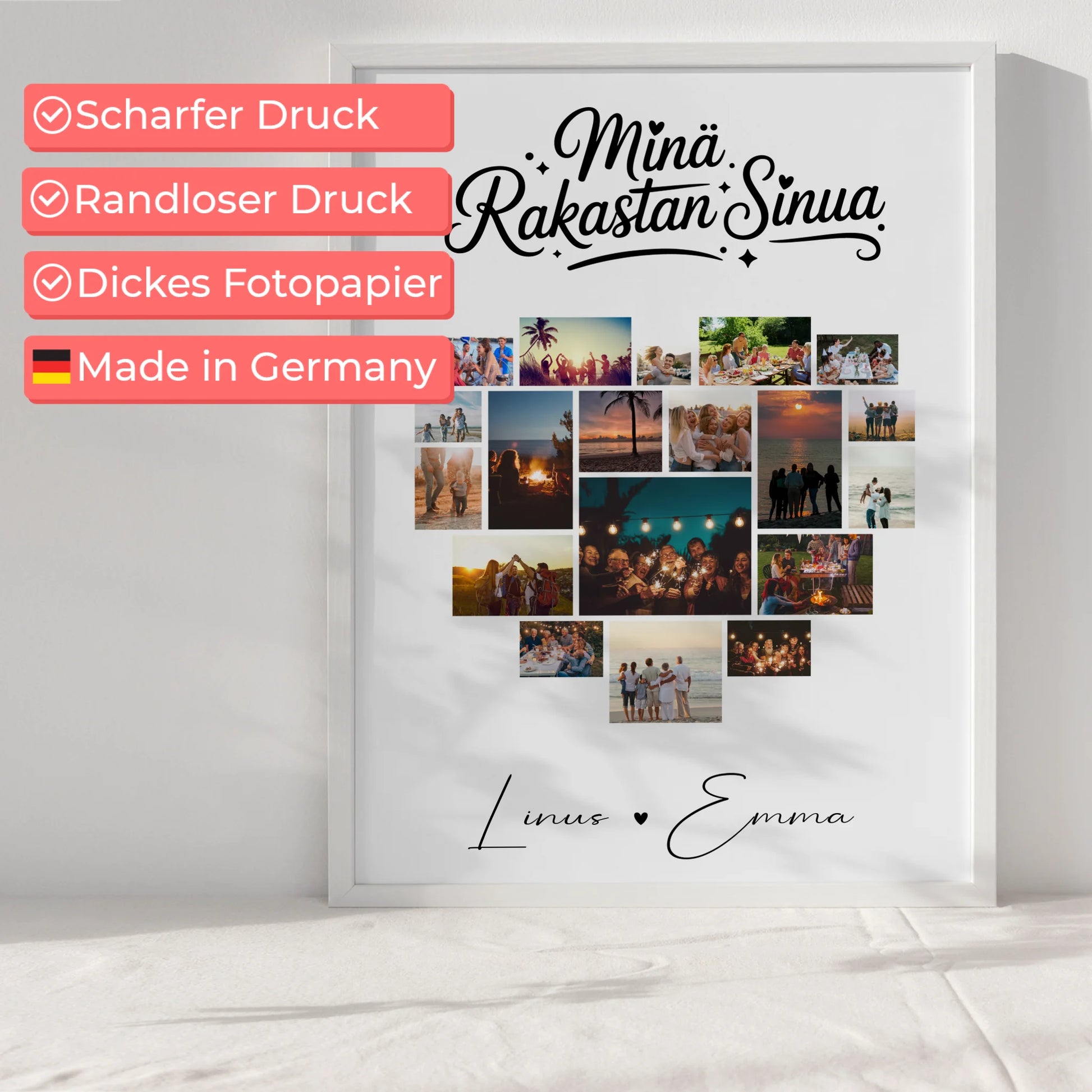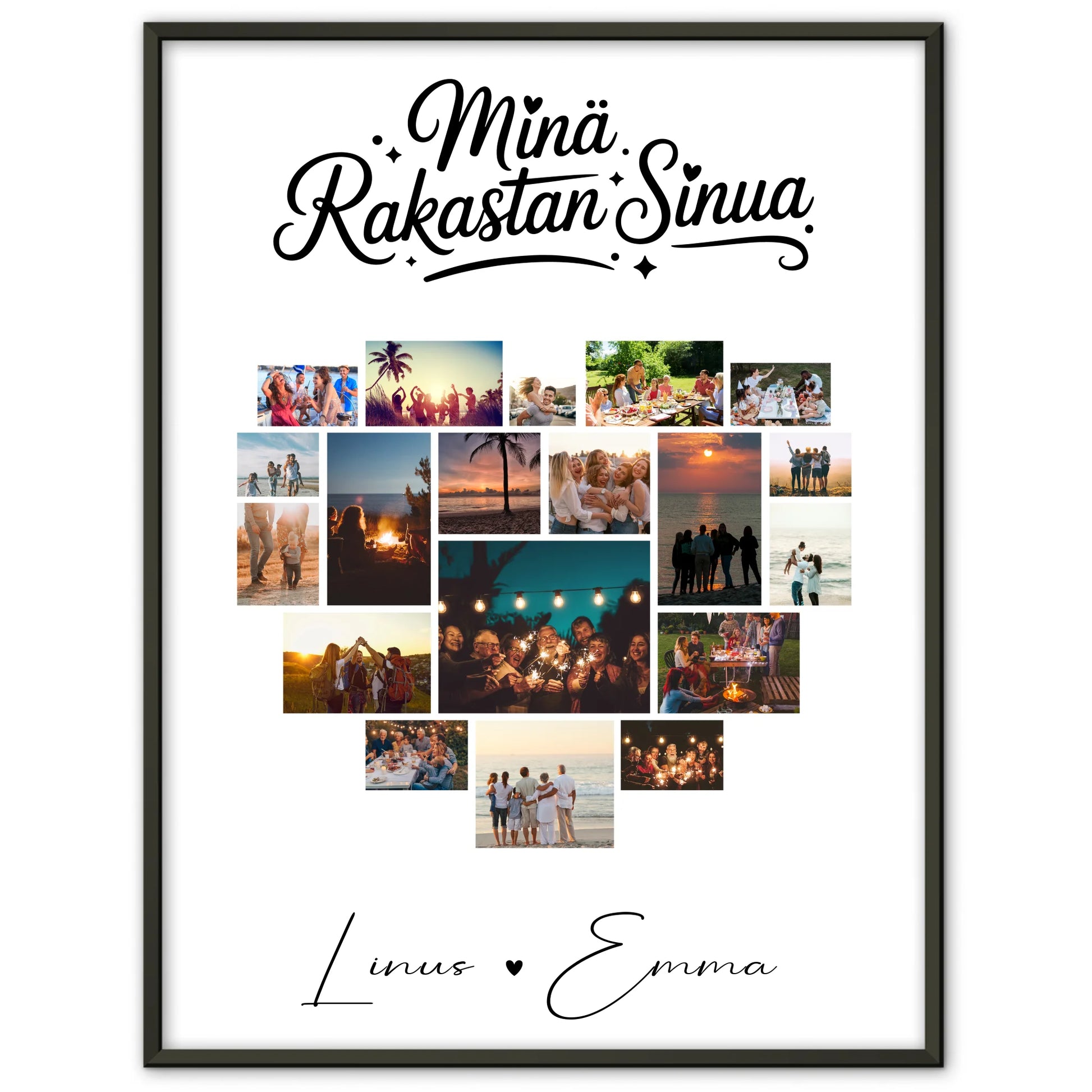 Pärchen Poster Personalisiert für Paare mit 19 Herz Fotos Finnisch