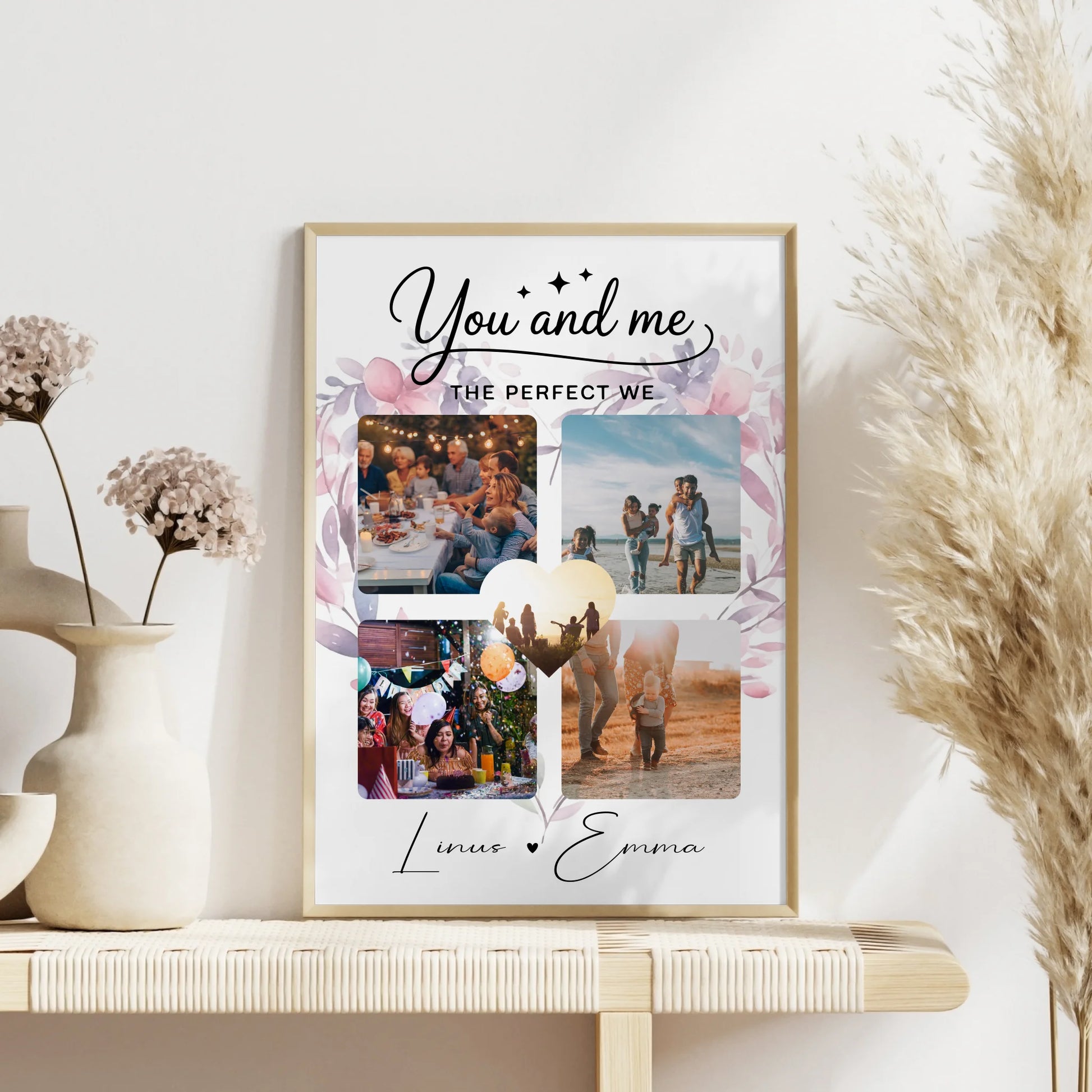 Pärchen Poster Personalisiert Geschenk Paar Fotocollage 4 Fotos You and me The perfect we